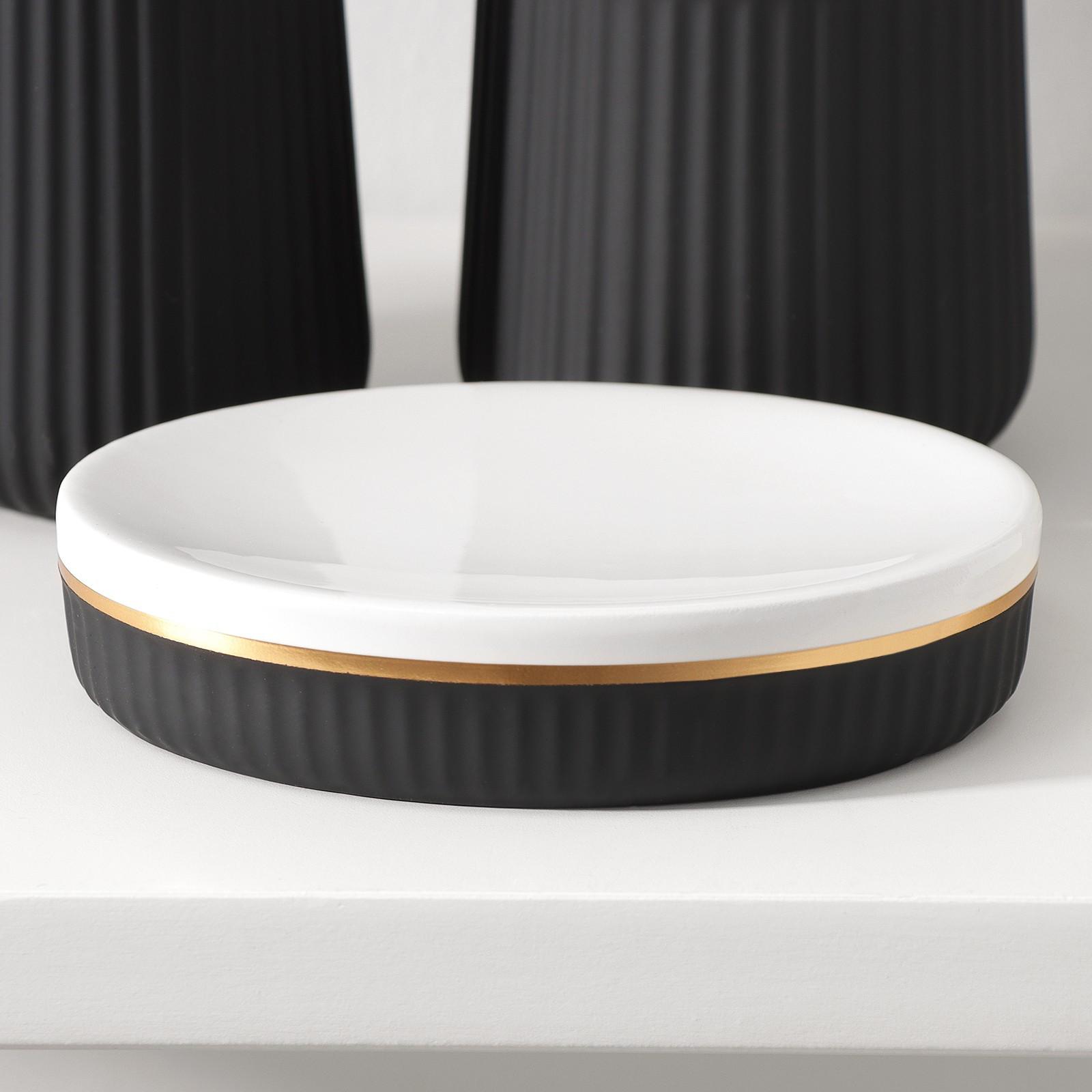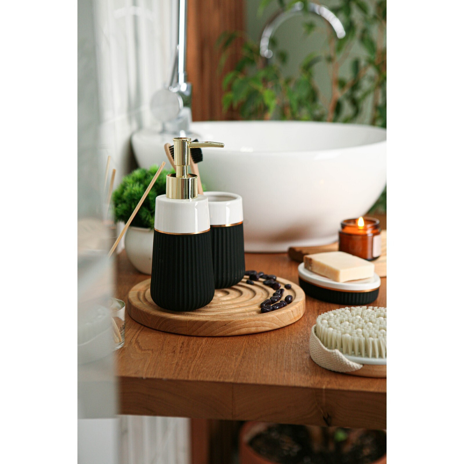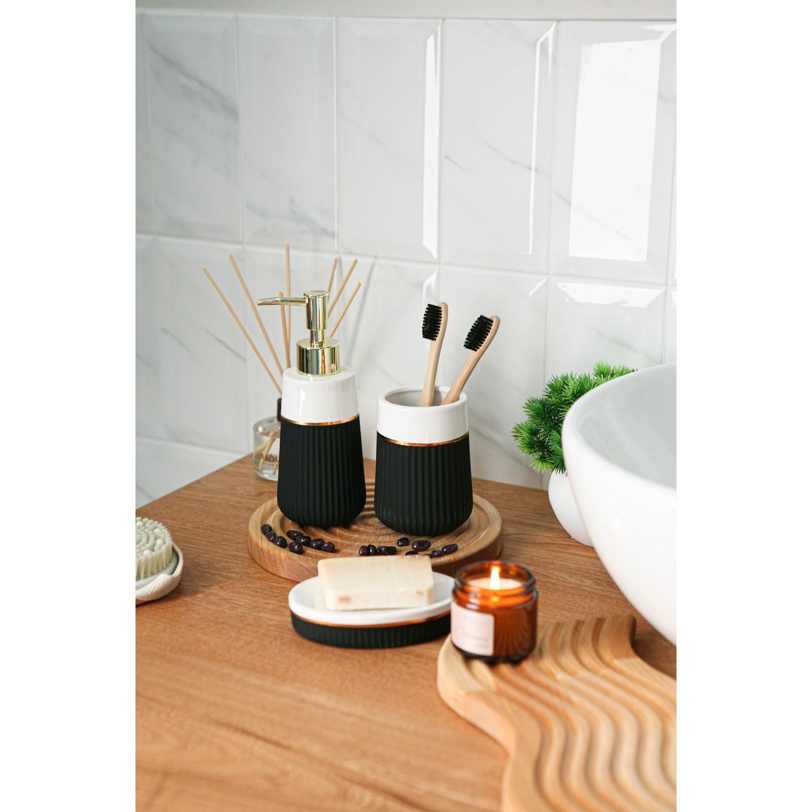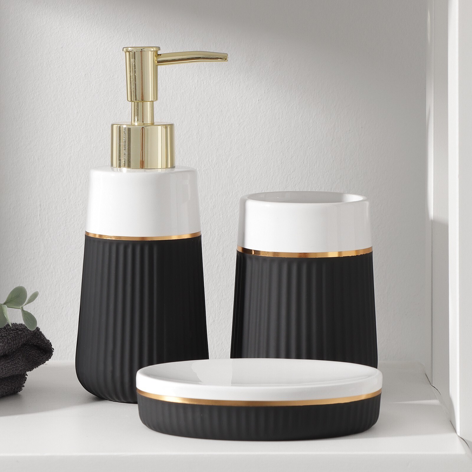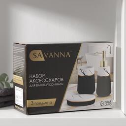 Набор аксессуаров для ванной комнаты SAVANNA Grace, 3 предмета (дозатор для мыла 290 мл, стакан, мыльница), цвет чёрный, белый