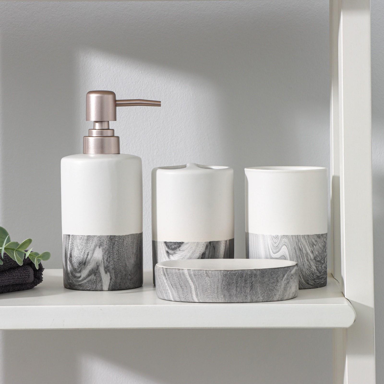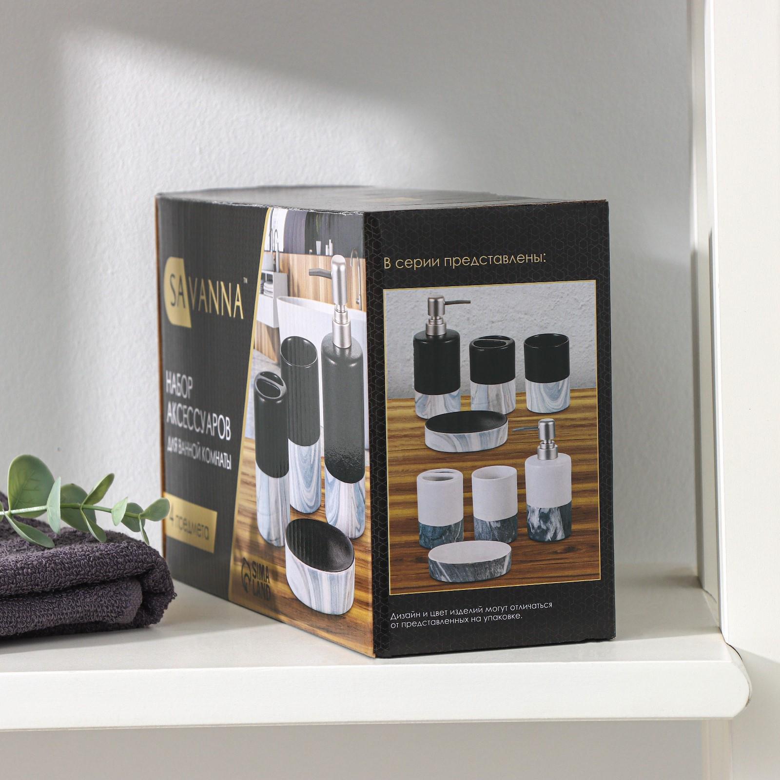 Набор аксессуаров для ванной комнаты SAVANNA Stone gray, 4 предмета (дозатор для мыла 390 мл, 2 стакана, мыльница)