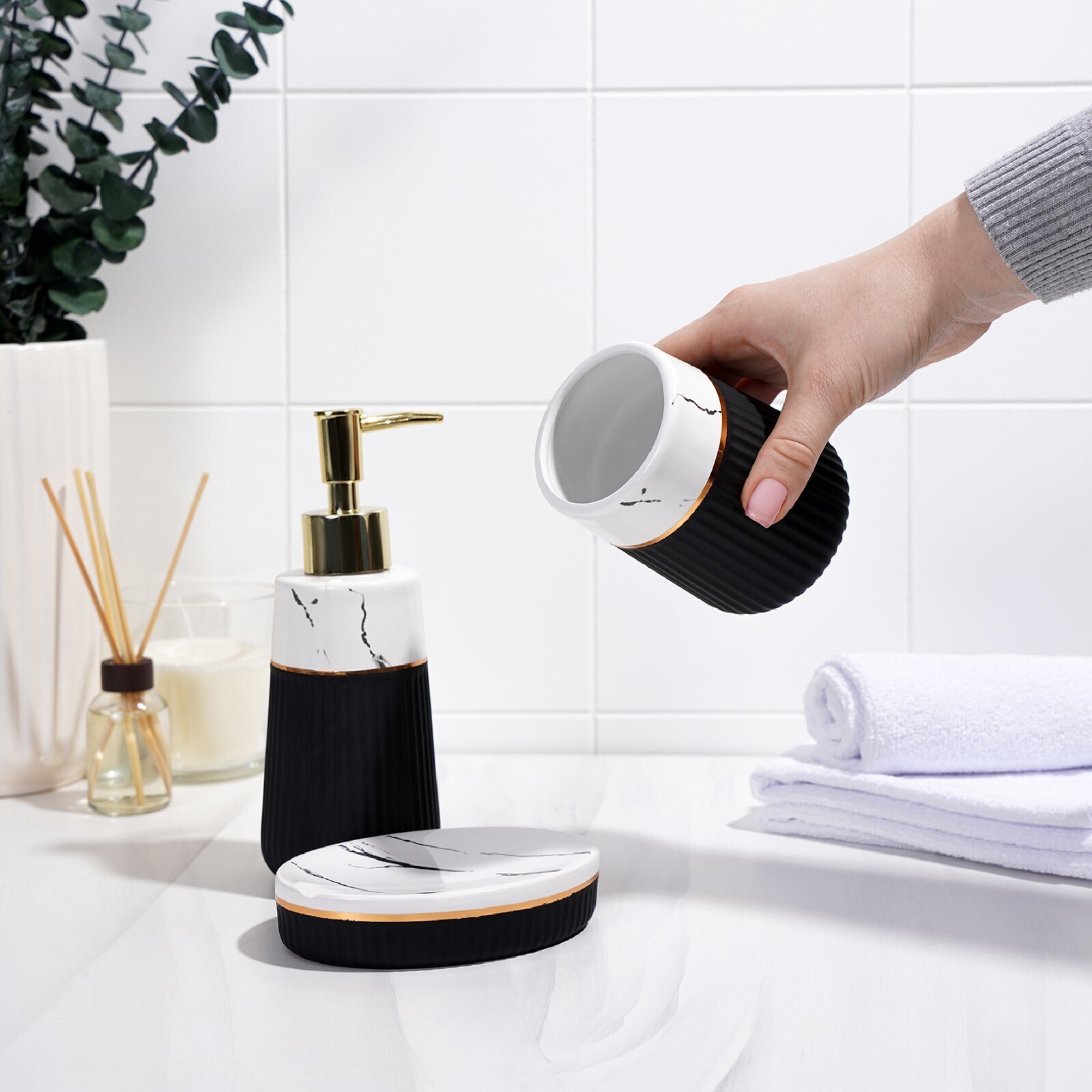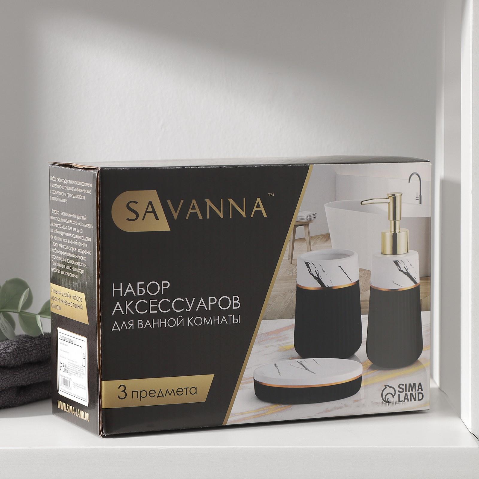 Набор аксессуаров для ванной комнаты SAVANNA Grace, 3 предмета (дозатор для мыла 290 мл, стакан, мыльница), цвет белый мрамор