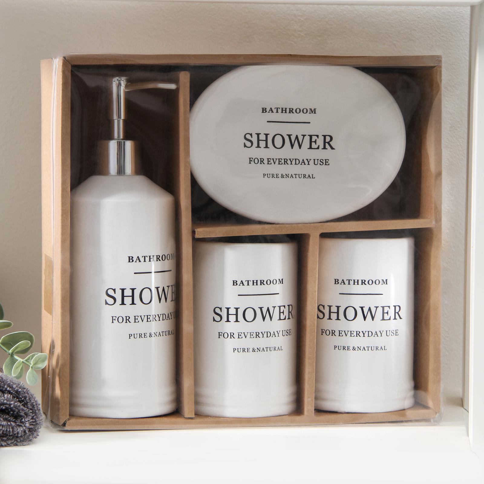 Набор аксессуаров для ванной комнаты «Лофт», 4 предмета (мыльница, дозатор для мыла 440 мл, 2 стакана 320 мл), цвет белый