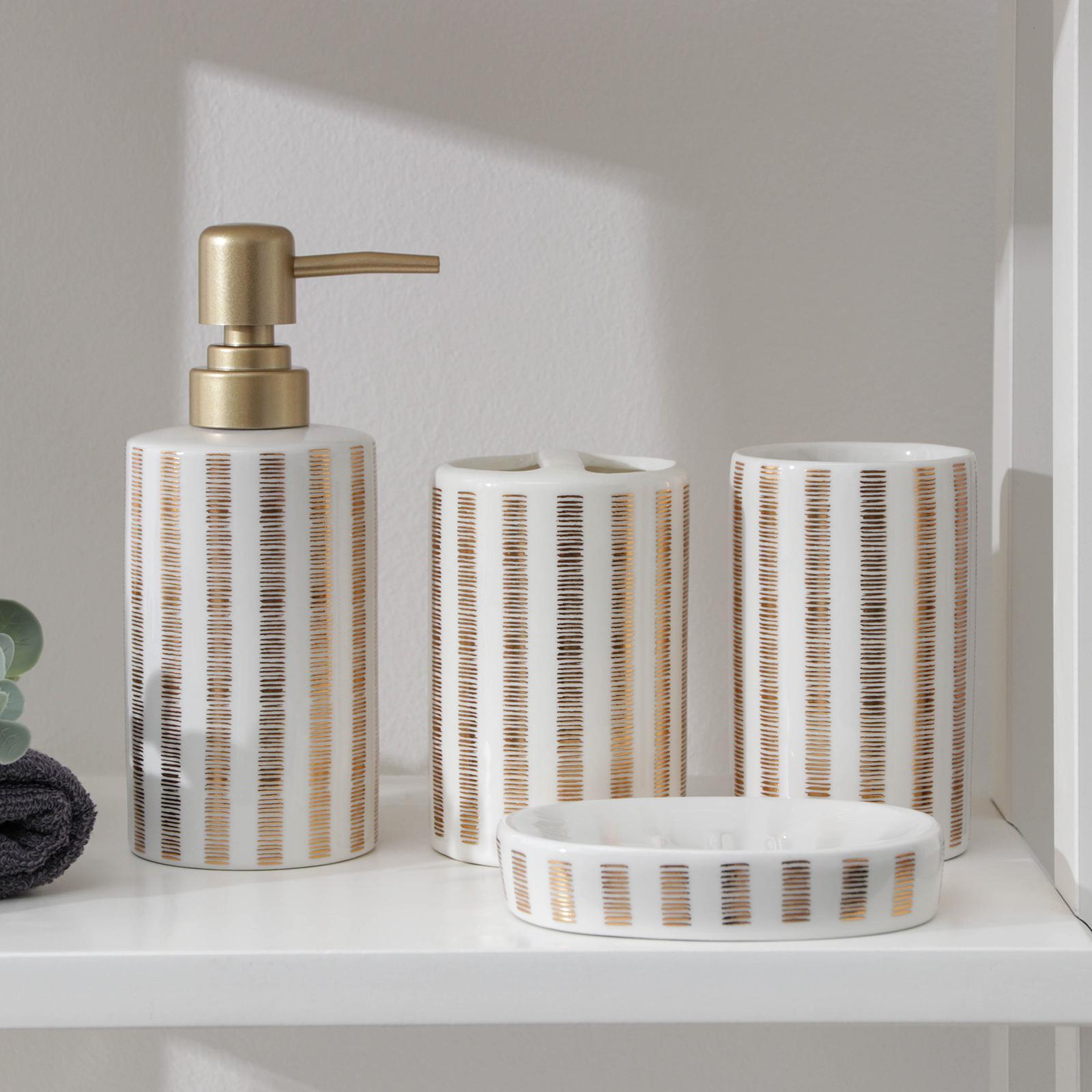 Набор аксессуаров для ванной комнаты «Мокко», 4 предмета (мыльница, дозатор для мыла 450 мл, 2 стакана), цвет белый