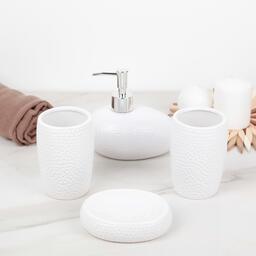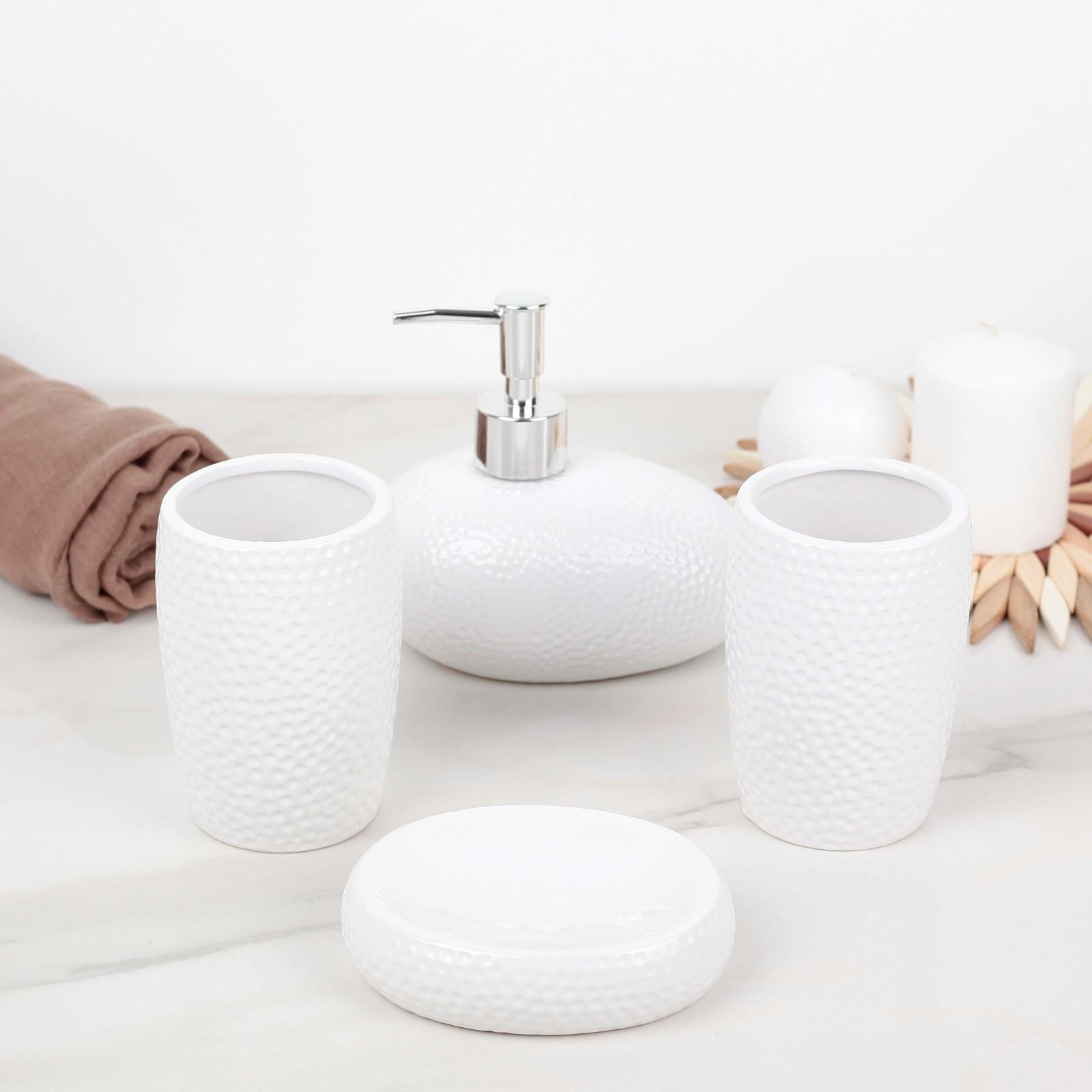 Набор аксессуаров для ванной комнаты «Камни», 4 предмета (дозатор 450 мл, мыльница, 2 стакана), цвет белый