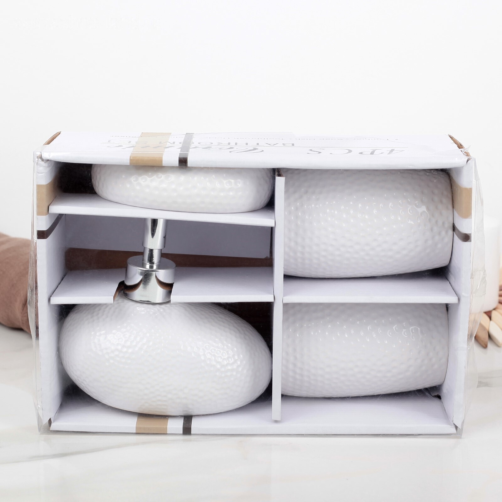 Набор предметов для ванной не только внесёт изюминку в интерьер, но и значительно облегчит хранение некоторых принадлежностей. Изделия устойчивы к резким перепадам температуры и высокой влажности. Также стоит отметить качество аксессуаров — набор при правильном уходе прослужит вам очень долго.