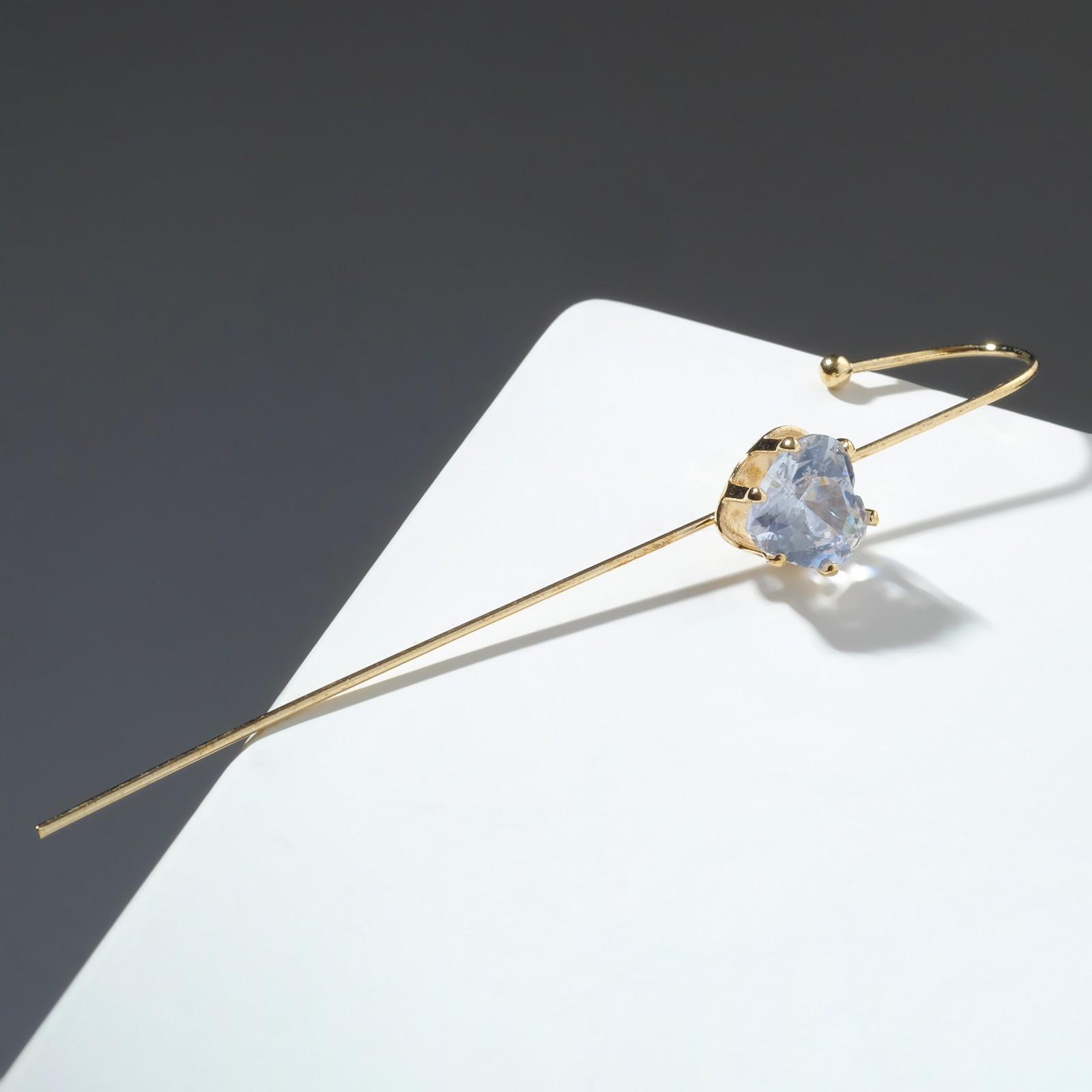 Серьга "Каффа" кристалл сердце, цвет белый в золоте