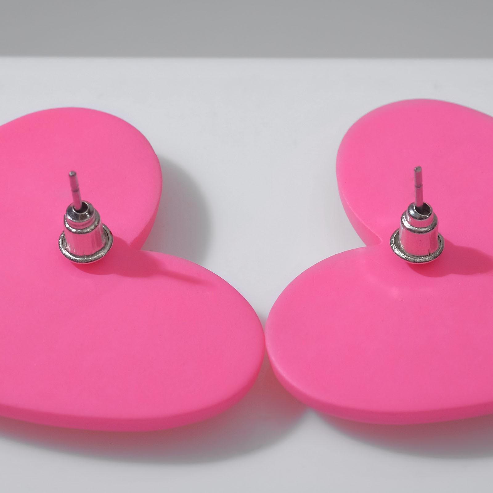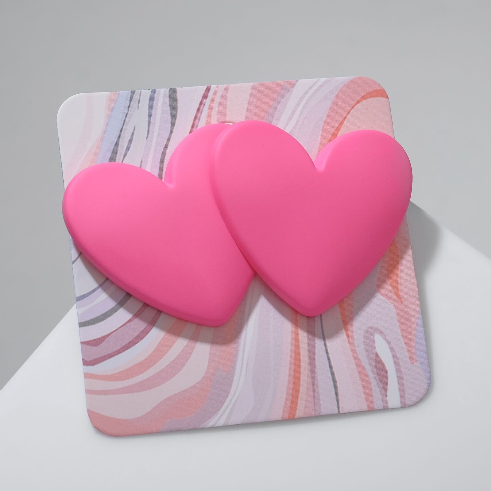 Серьги металл "Сердечки" мультяшные, цвет розовый