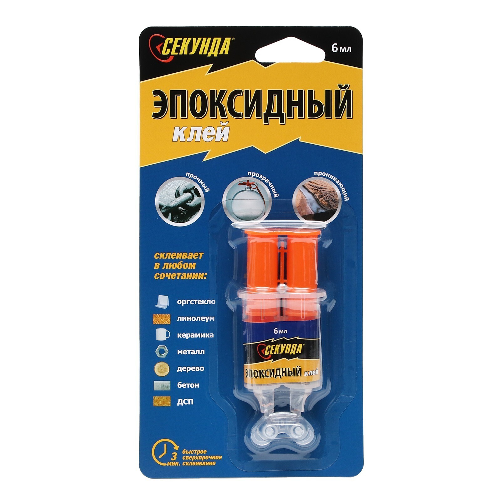 Эпоксидный клей "Секунда" 3 минуты (смола+отвердитель) в шприце 3+3 мл