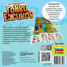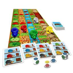 Задача игрока довести трёх из пяти ёжиков к финишу в определённом порядке, заданном в вашей карточке в начале игры. Бросайте кубики и выбирайте кто из ёжиков продвинется дальше. Но это далеко не всё. Игра насыщена разнообразными уловками, отчего играть будет интересно и взрослым.