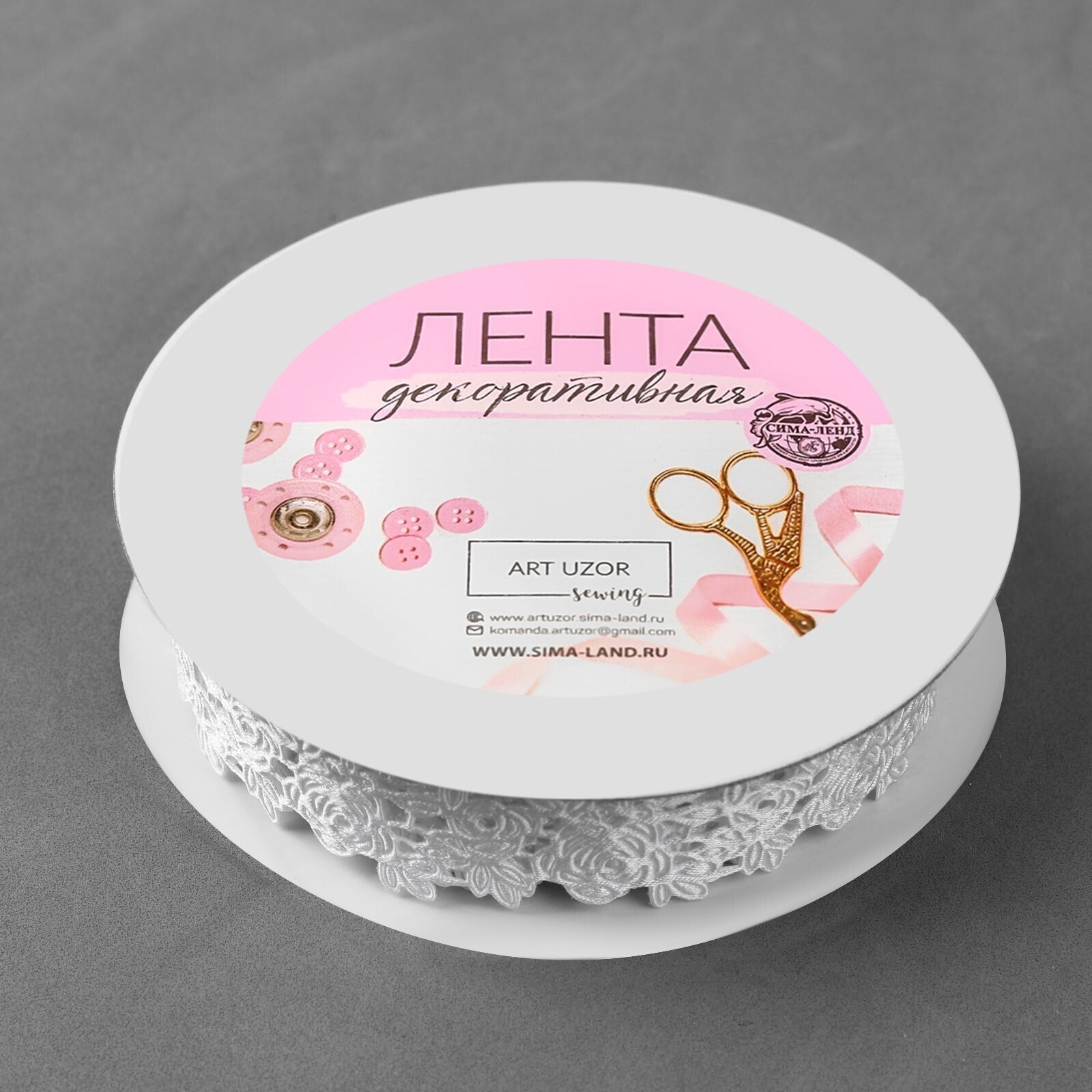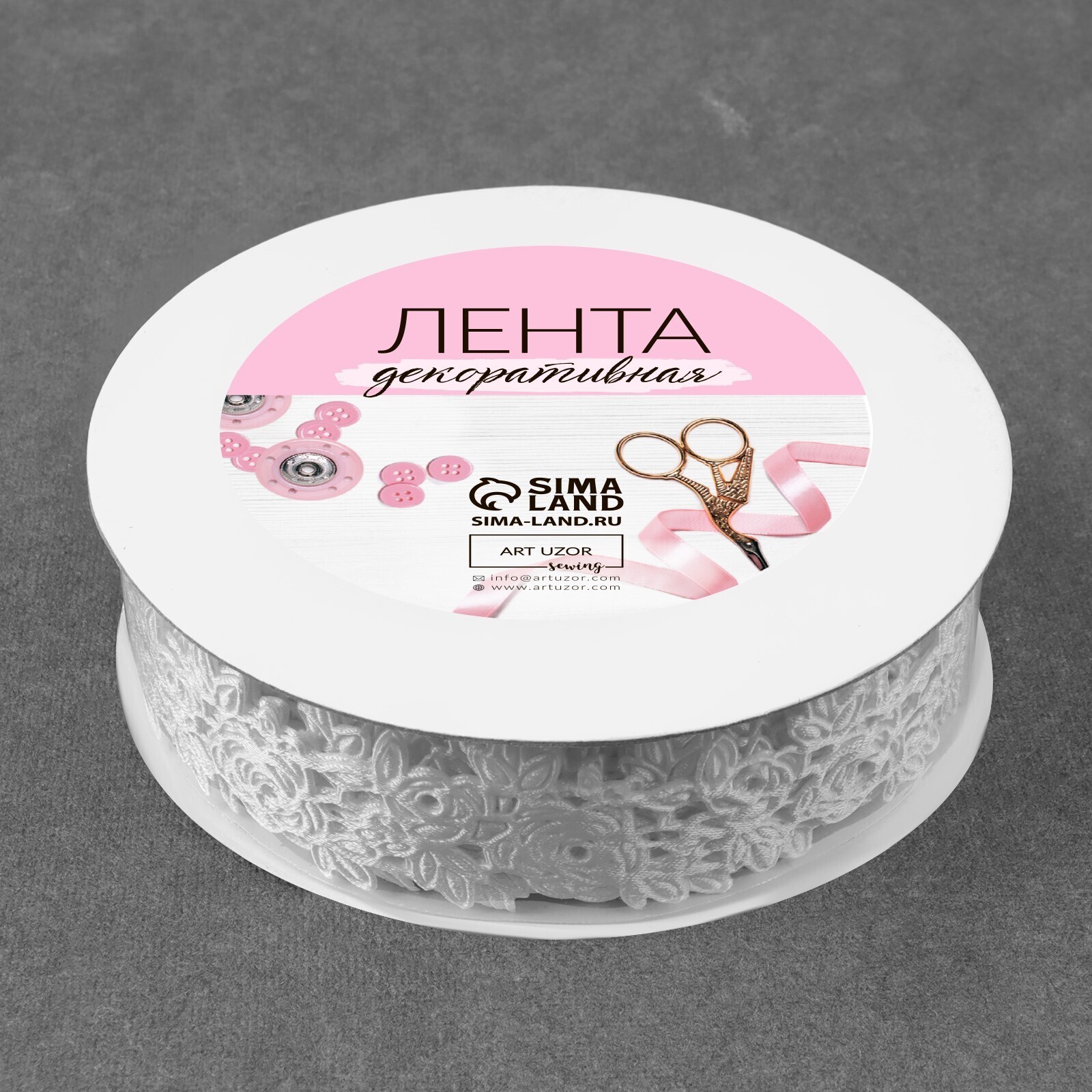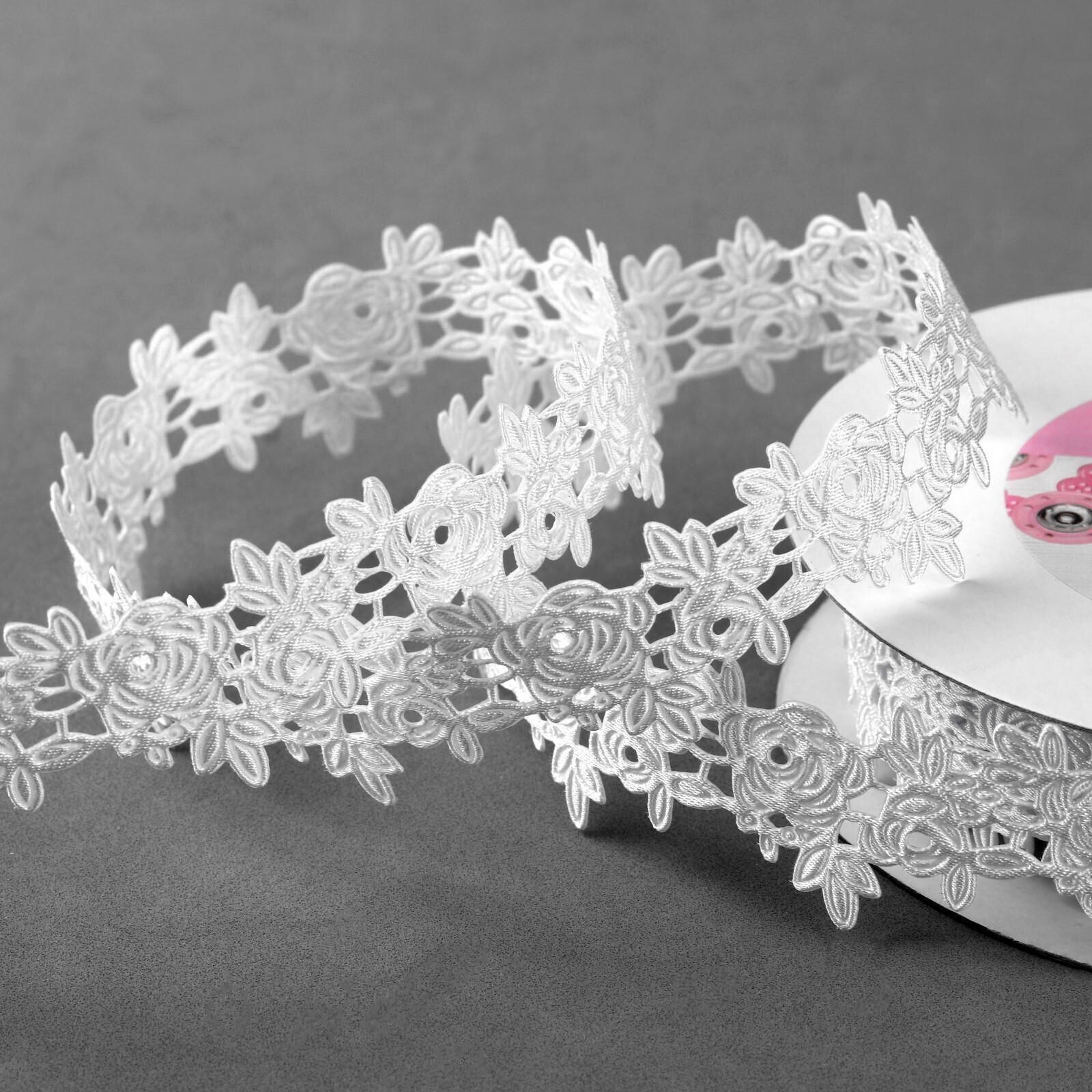 Лента фигурная «Розы», 25 мм, 9 ± 0,5 м, цвет белый