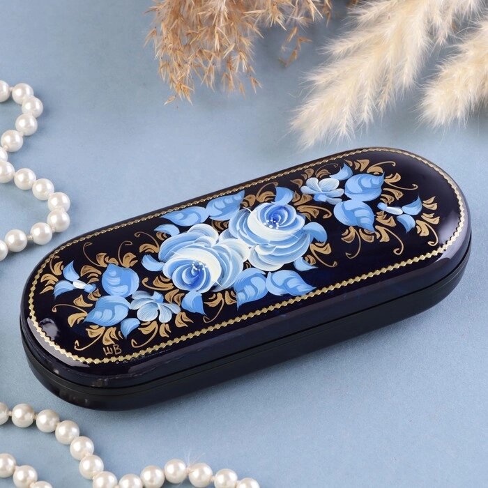 Футляр для очков "Голубые розы", лаковая миниатюра, 16 см