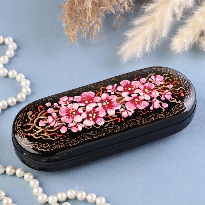 Футляр для очков "Розовый букет", лаковая миниатюра, 16 см