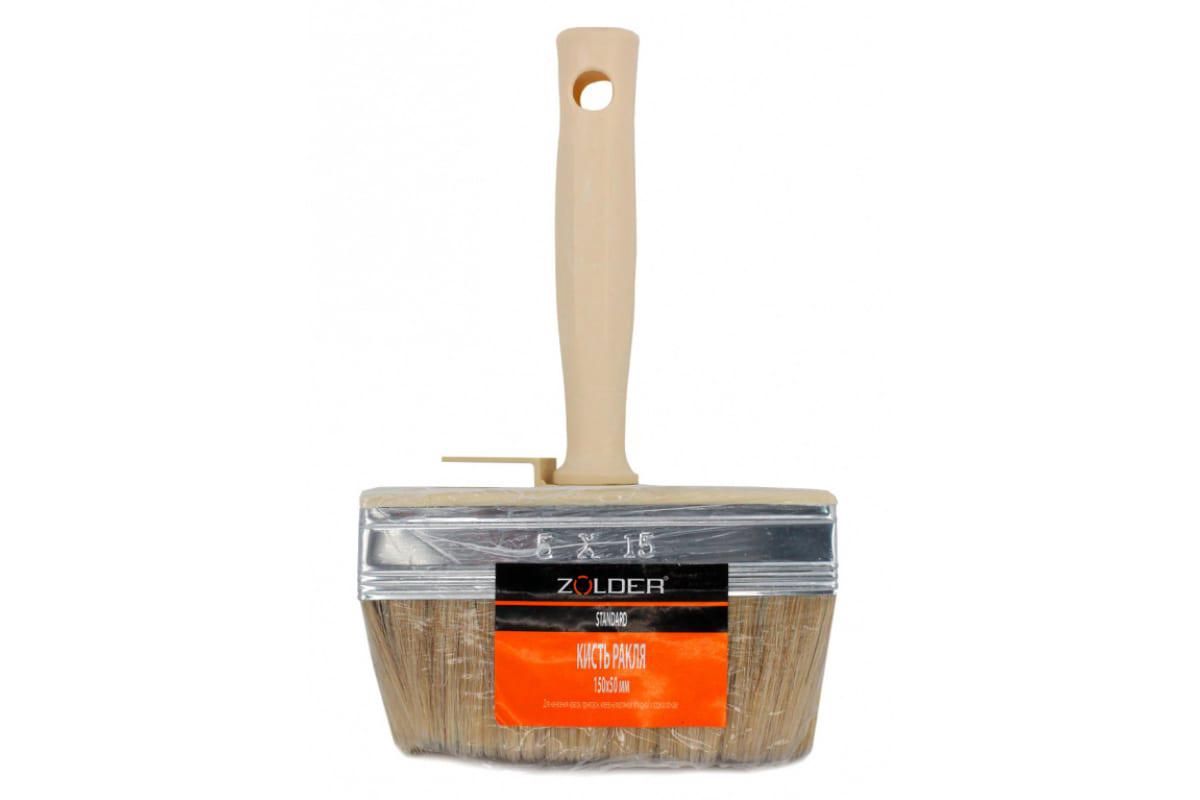 Ракля 150/50, пластмассовая ручка, натуральная щетина, бренда ZOLDER. Отличается широкой областью применения. Предназначена для работы с эмульсионными, латексными и акриловыми красками. Имеет удобную и практичную пластмассовую ручку, применяется для окрашивания больших поверхностей.