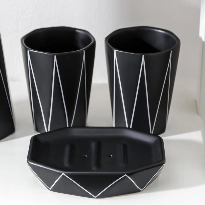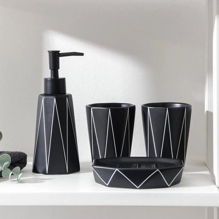 Набор для ванной комнаты «Локо», 4 предмета (дозатор для мыла 280 мл, мыльница, 2 стакана 250 мл), цвет чёрный