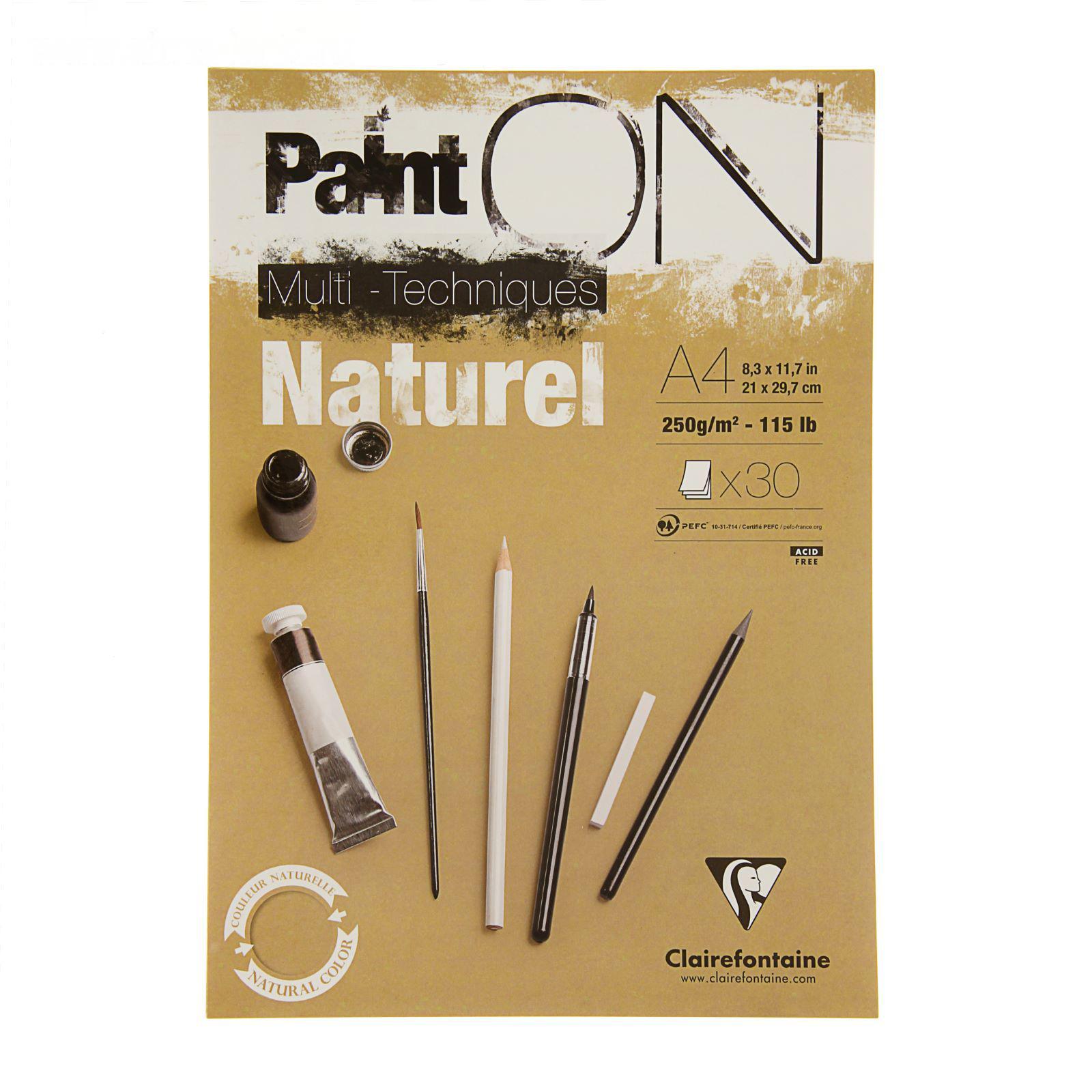 Альбом для смешанных техник Clairefontaine Paint'ON на склейке. Альбом для смешанных техник Paint'ON – лучшая линейка от французского производителя Clairefontaine. Бумага имеет хорошую поглощающую способность и адаптирована к сухим методам рисования (карандаш, фломастер), а также к мокрым техникам (гуашь, акрил). Вид крепления – склейка, позволяет легко отделить лист с готовым рисунком.