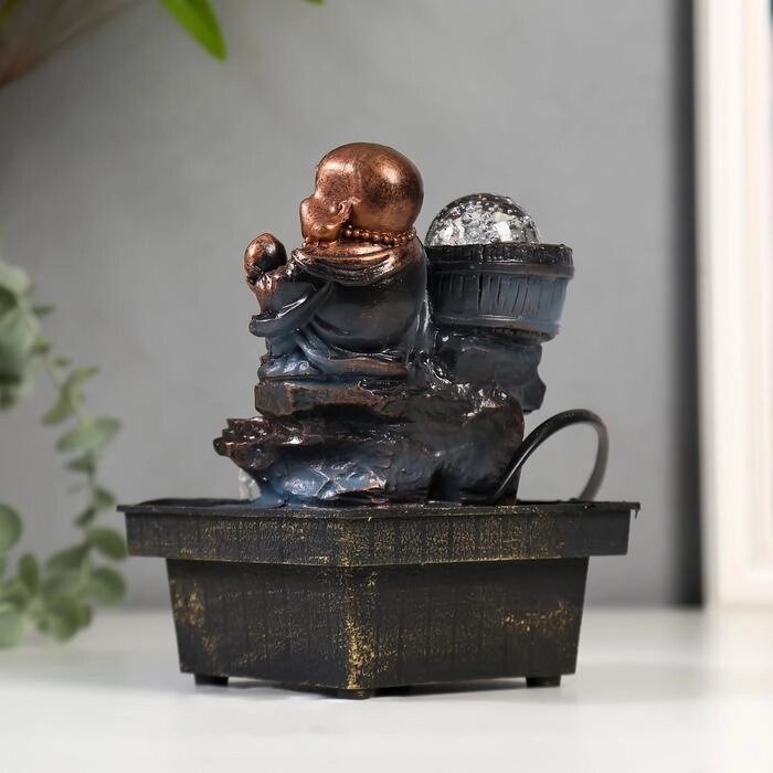 Фонтан "Счастливый хотей с персиком" зелено-бронзовый 19,5х13,5х10 см