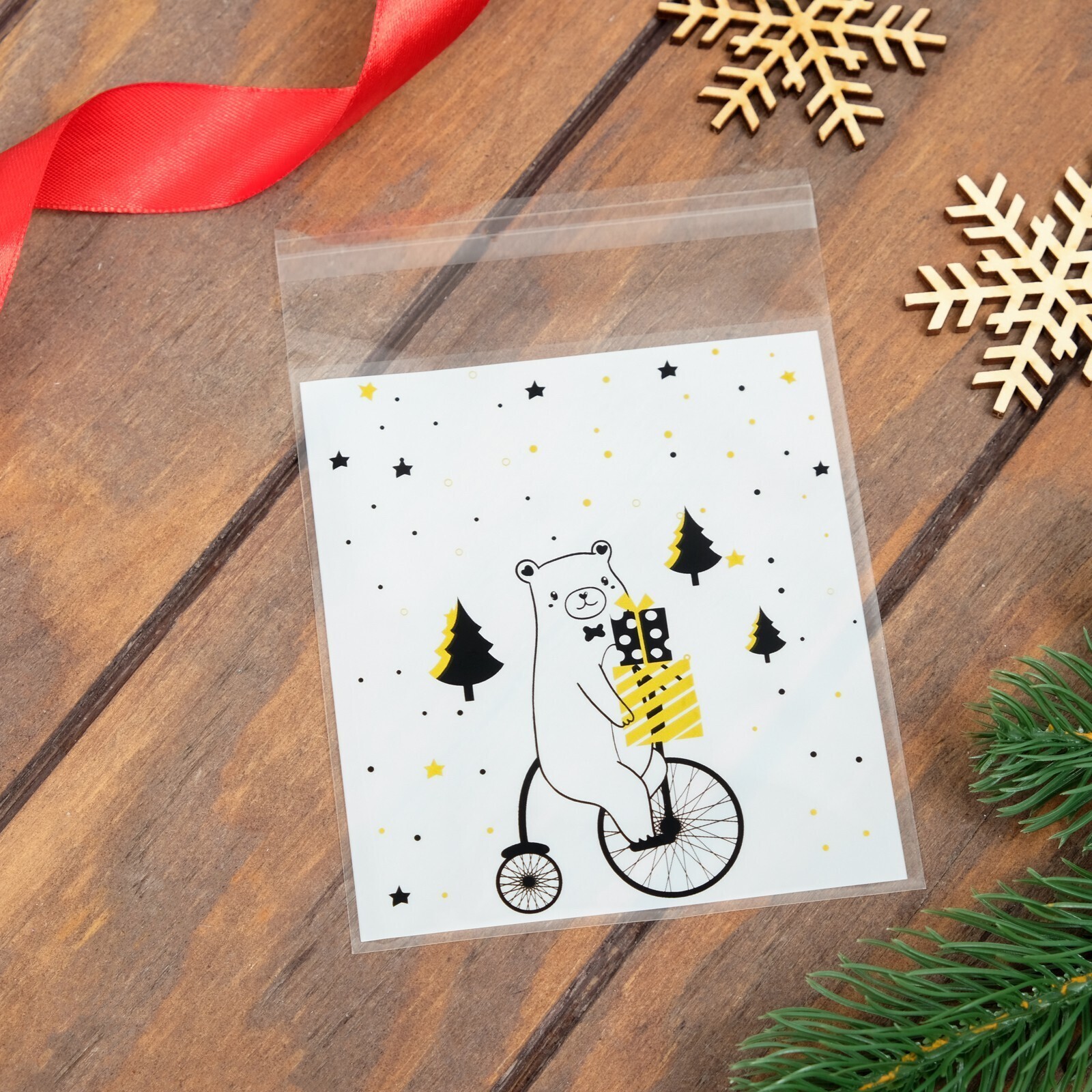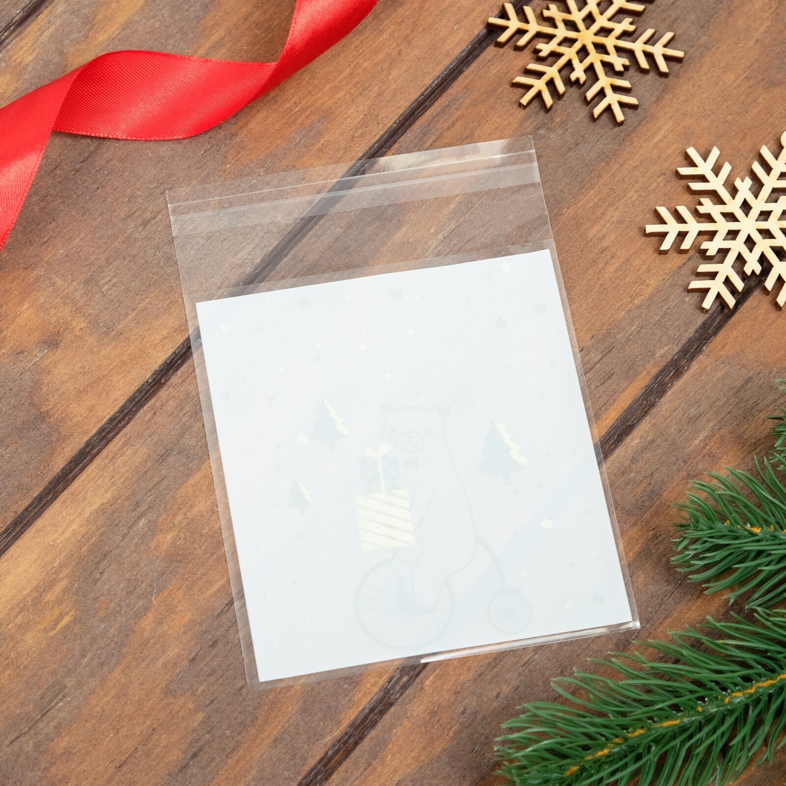 Пакет БОПП с липкой лентой, "Новогодний курьер", 10 х 11 см