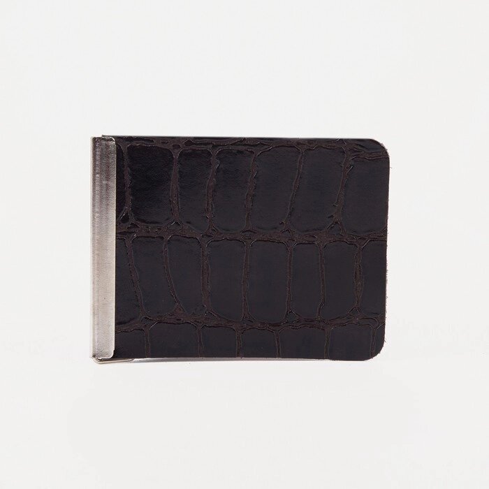 Зажим для купюр, с металлическим держателем, скат, цвет коричневый