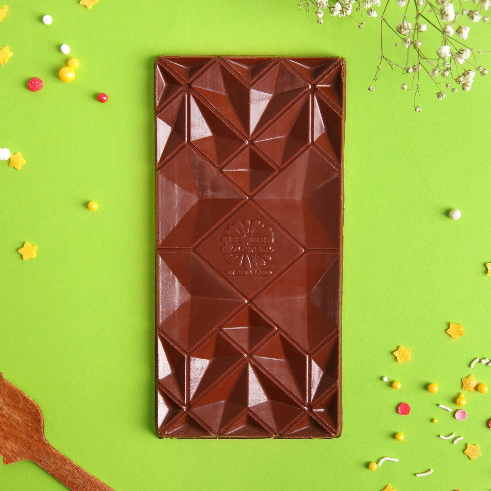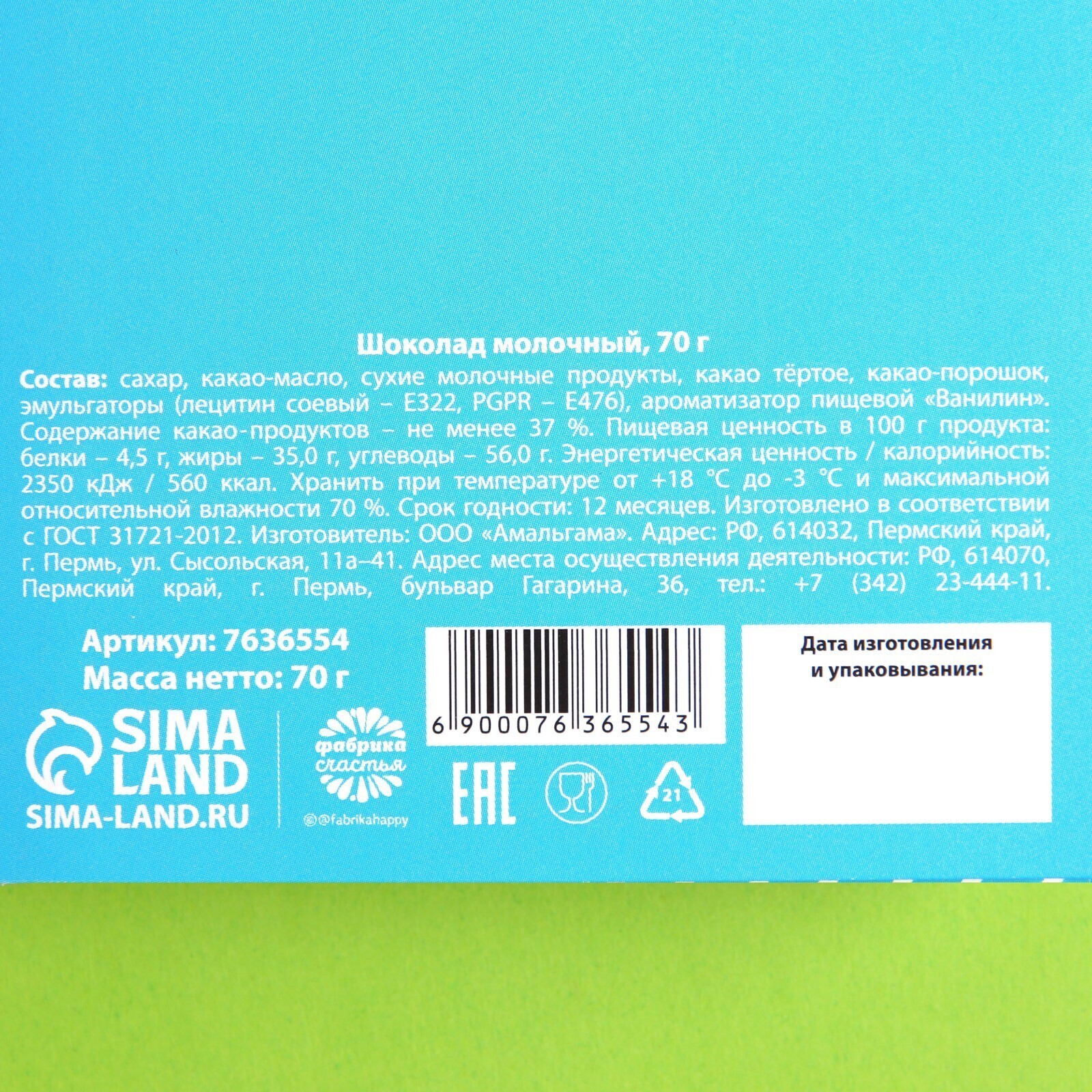 Состав: сахар, какао-масло, сухие молочные продукты, какао тертое, какао-порошок, эмульгаторы (лецитин соевый – Е322, PGPR – Е476), ароматизатор пищевой «Ванилин». Содержание какао продуктов – не менее 37 %.