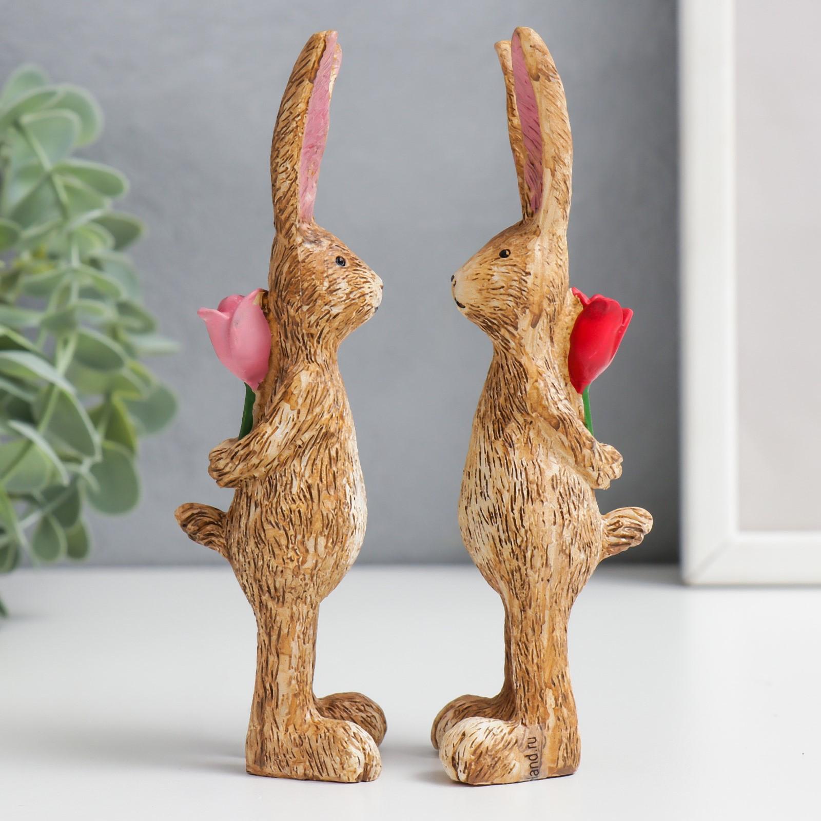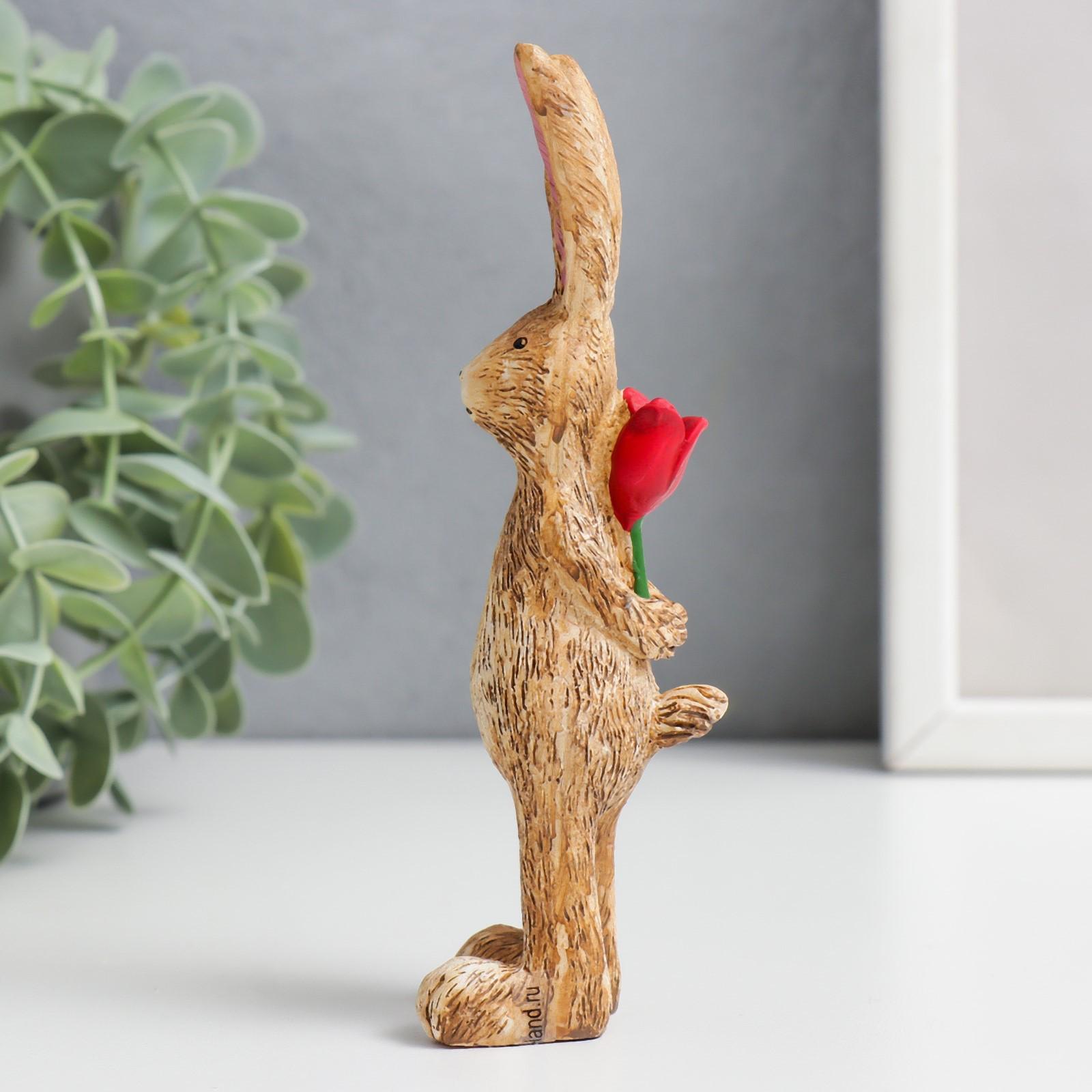 Сувенир полистоун "Заяц с тюльпаном" МИКС 4,5х4,7х14 см