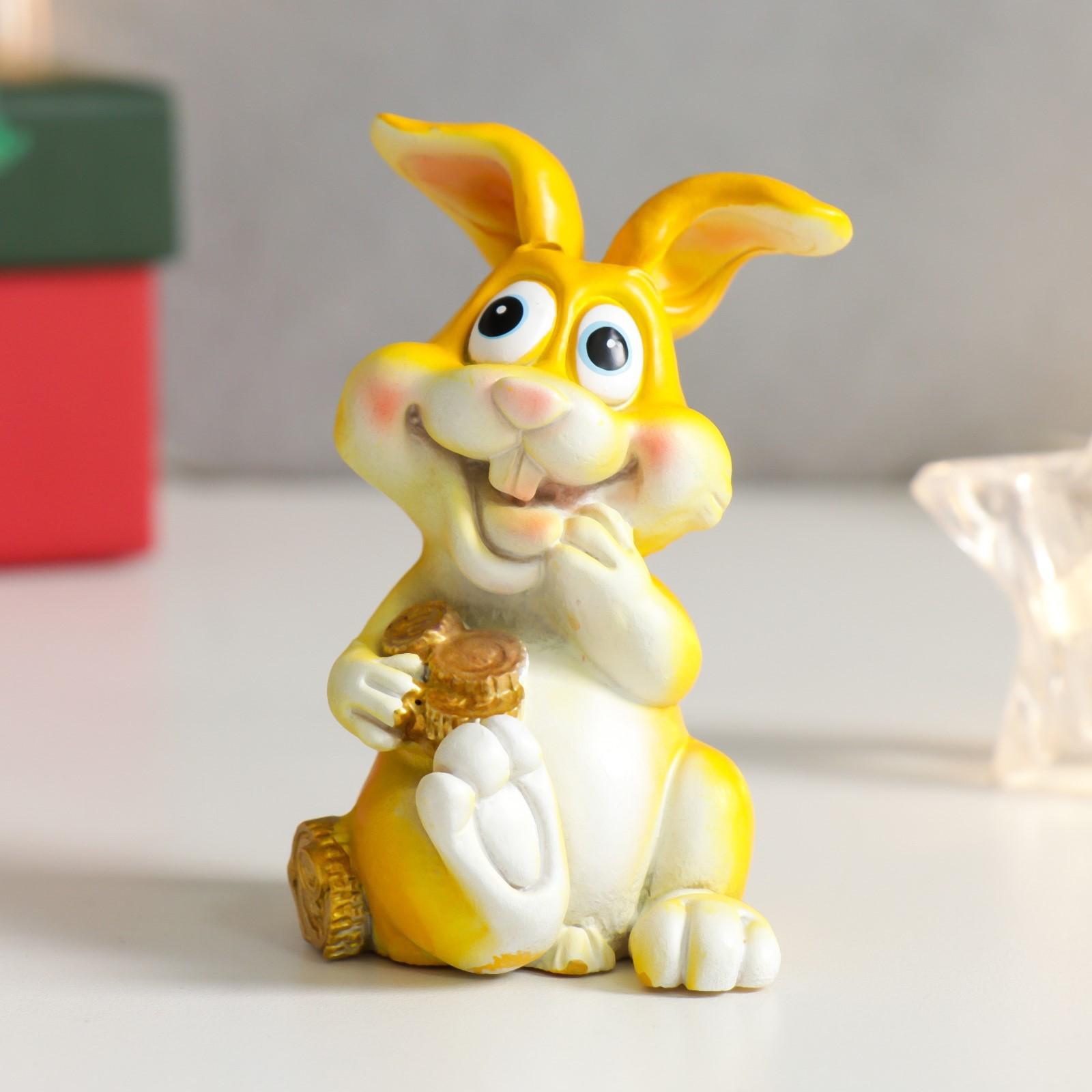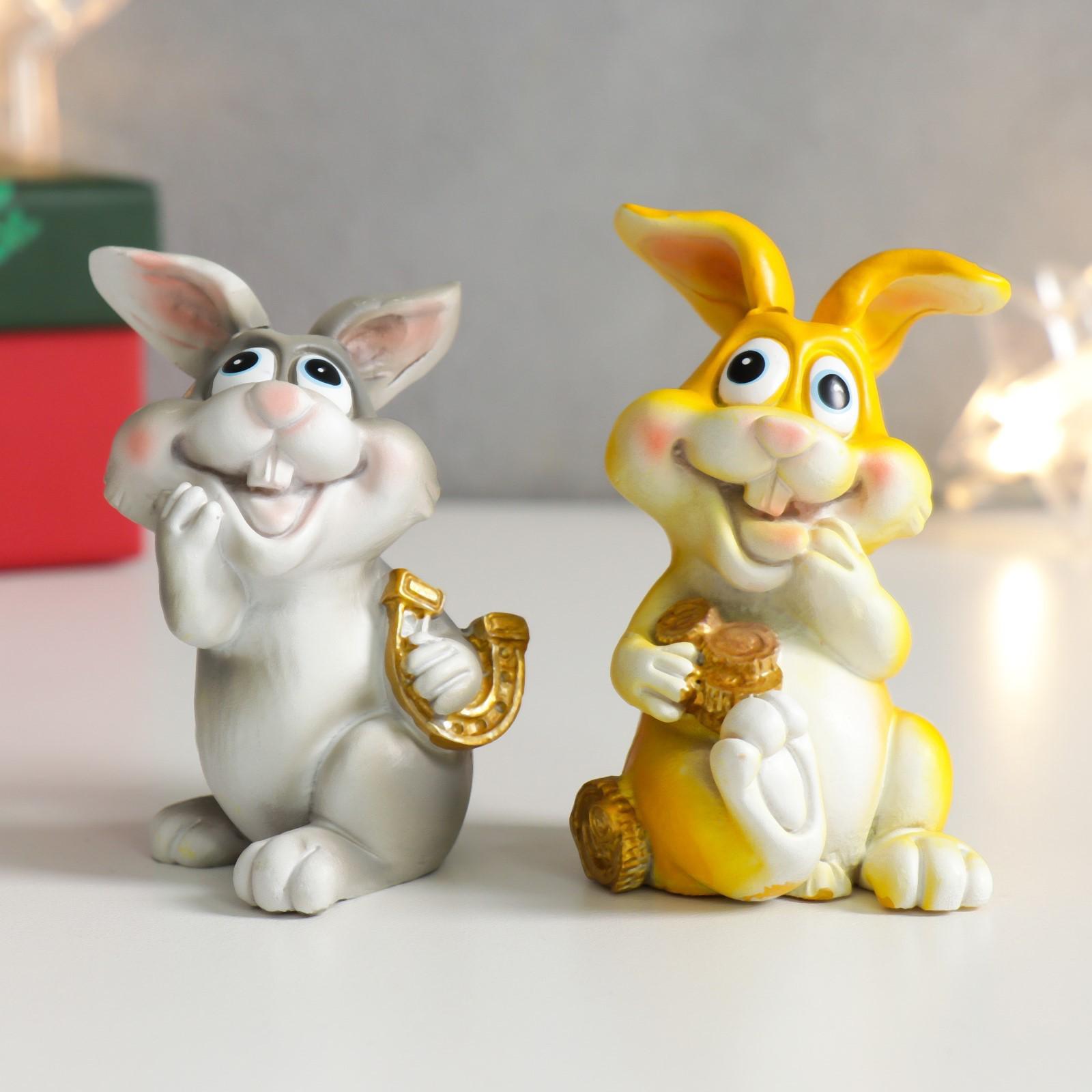 Сувенир полистоун "Зайка с монетками/подковой" МИКС 5х4,5х7,5 см