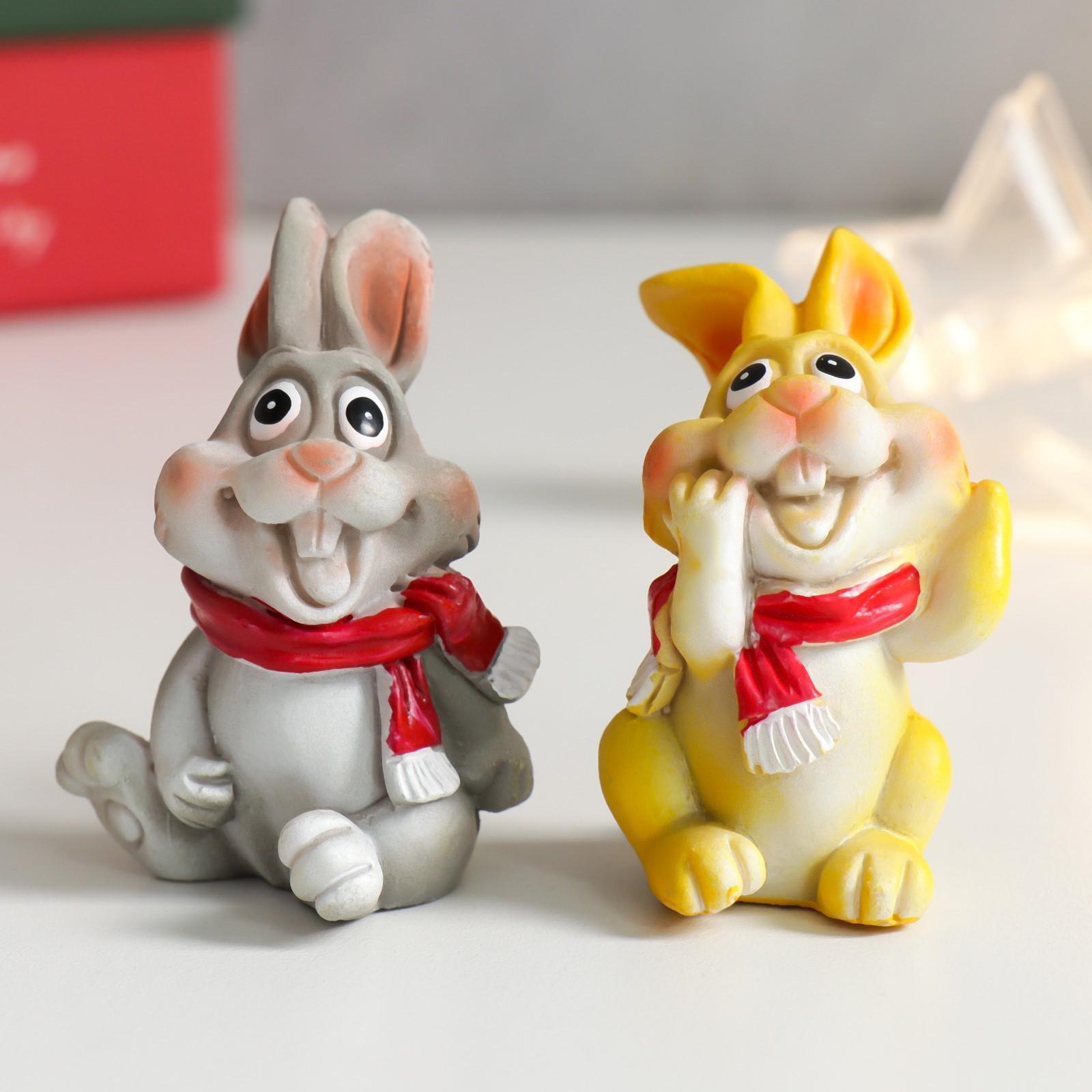 Сувенир полистоун "Зимний зайчик" МИКС 3,5х3х5,5 см