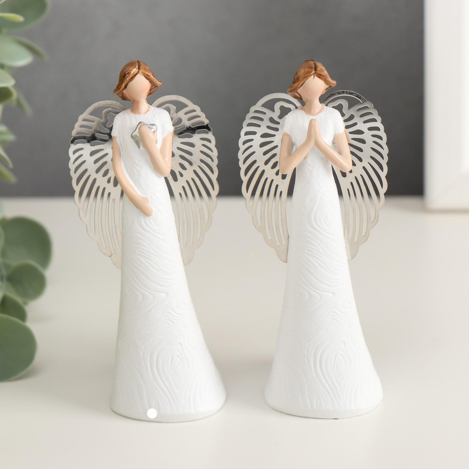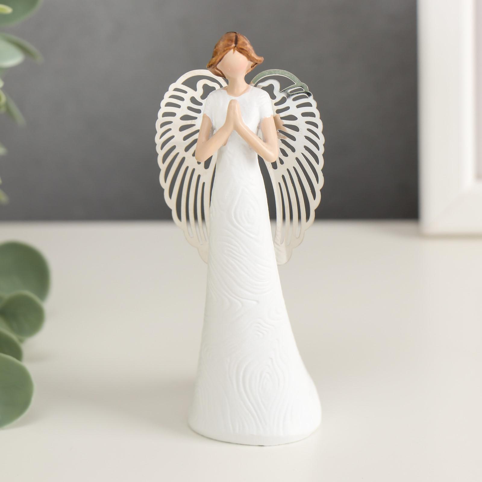 Сувенир полистоун "Ангел безликий с серебристыми крыльями" МИКС 10,3х3,5х3,8 см