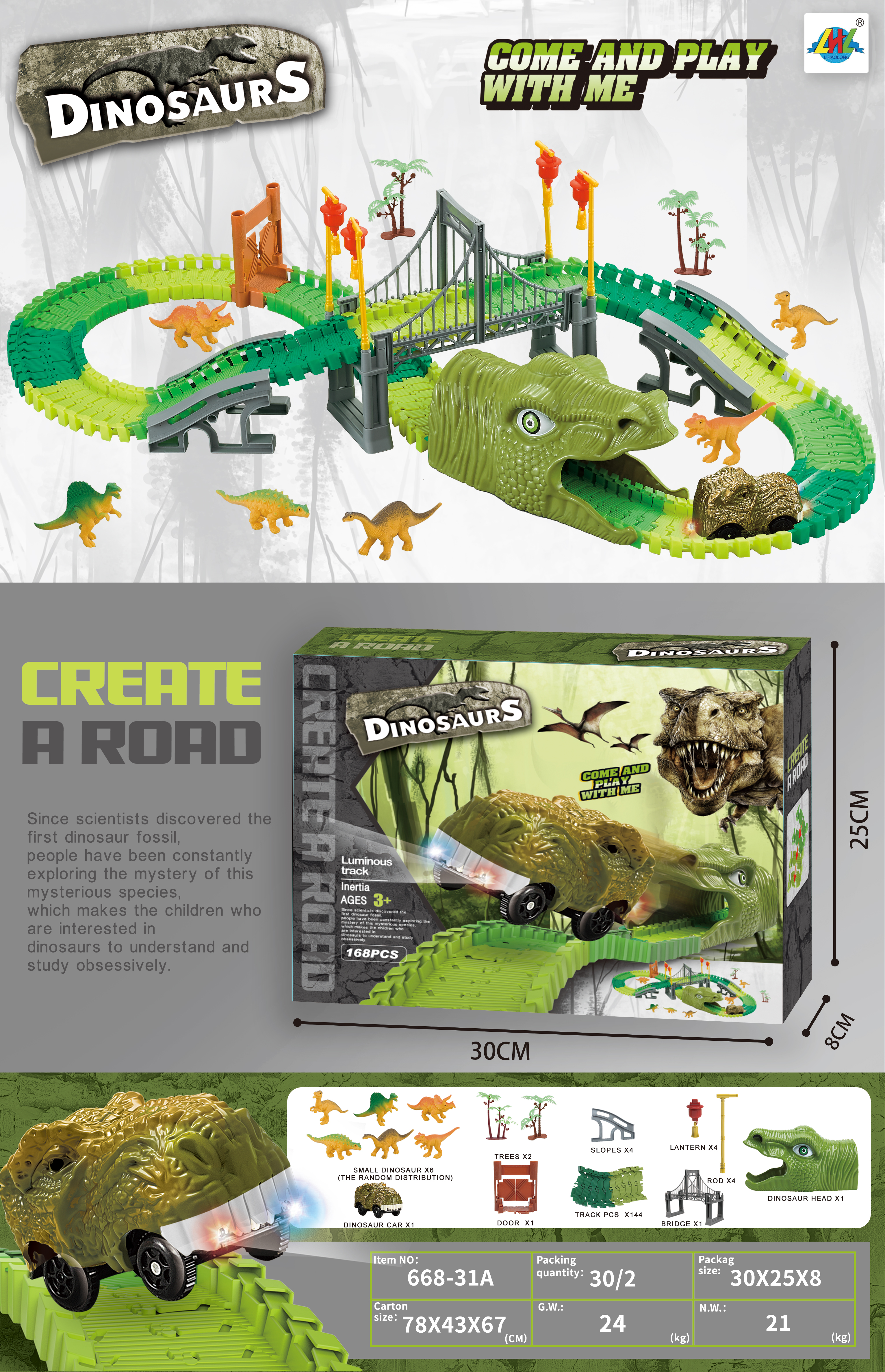 Игровой набор "Динопарк"Материал: пластикКомплектность: 168 элементов (участки трека, пролеты моста, опоры, динозавры, деревья), диномашинаЦвет: зеленыйУпаковка: цветная картонная коробкаРазмеры упаковки: 30х8х25 см