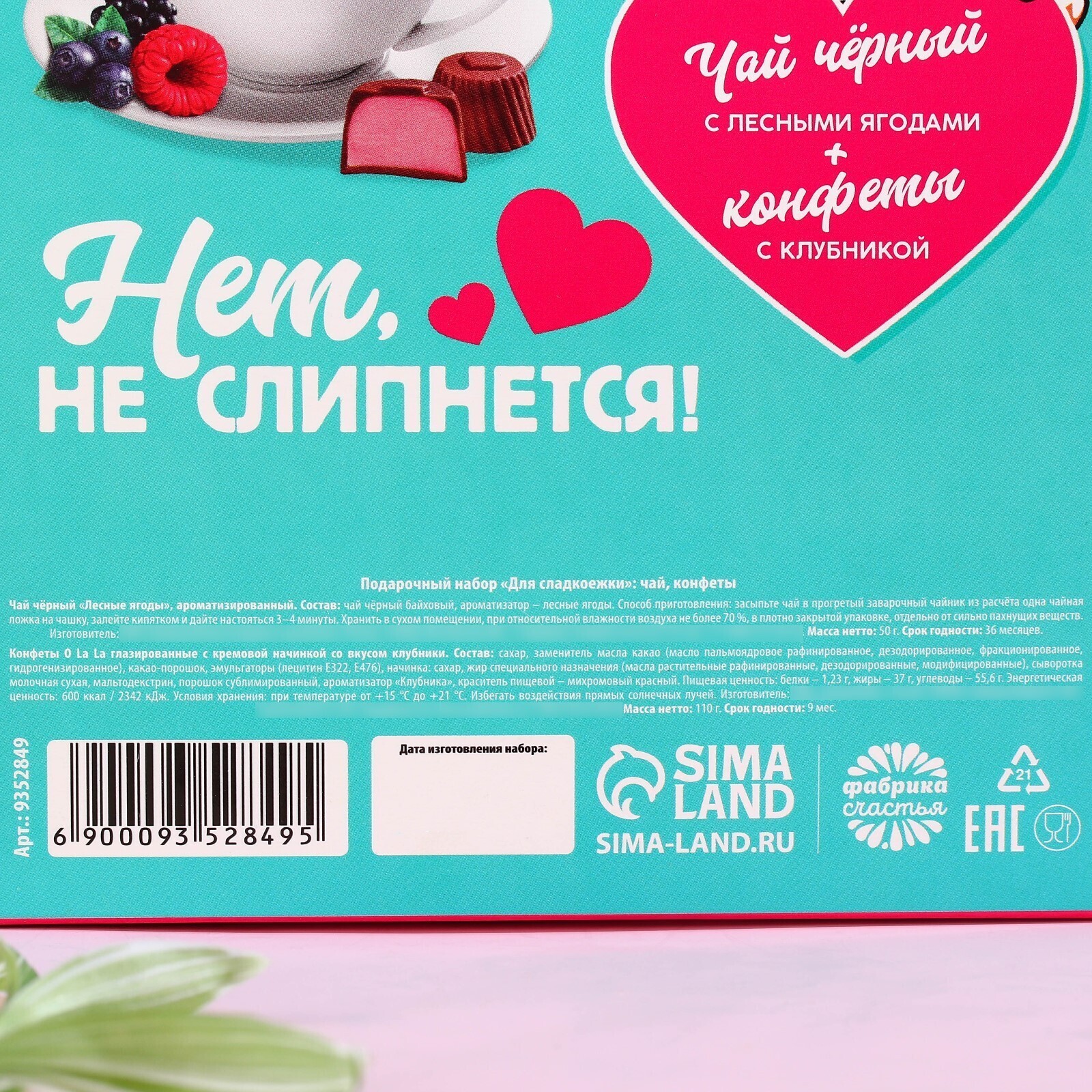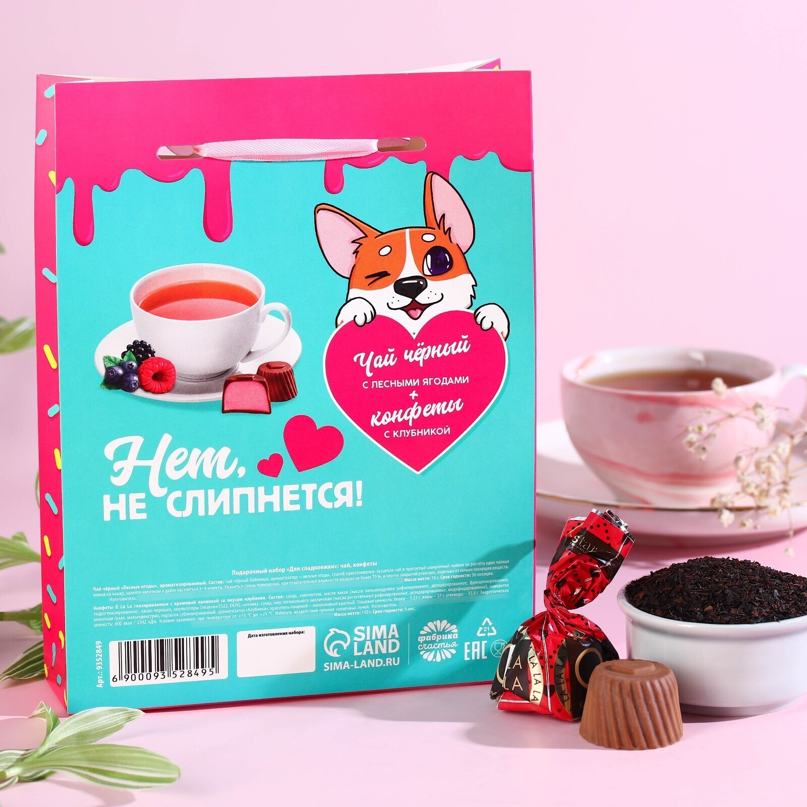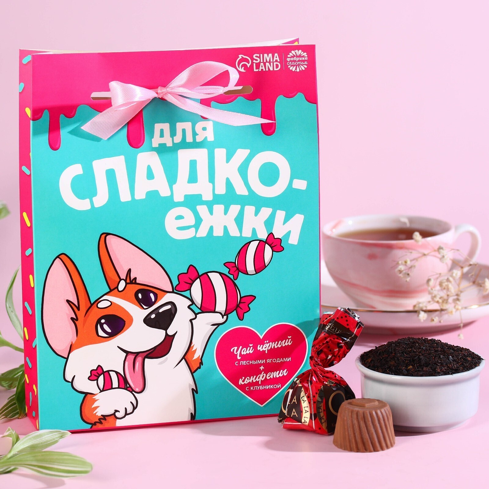 Подарочный набор «Для сладкоежки», чай со вкусом лесных ягод 50 г., конфеты с кремовой начинкой, вкус: клубника 110 г.