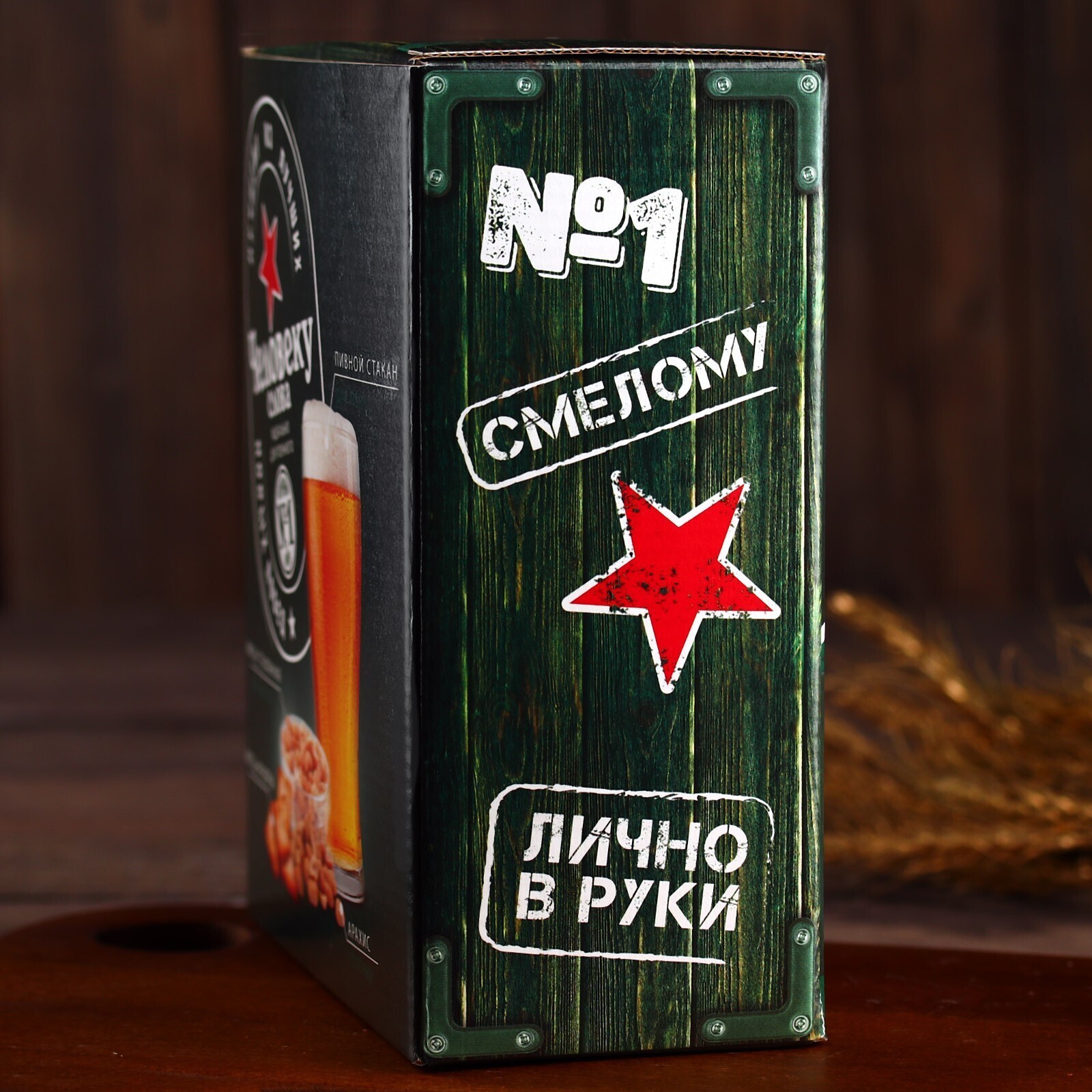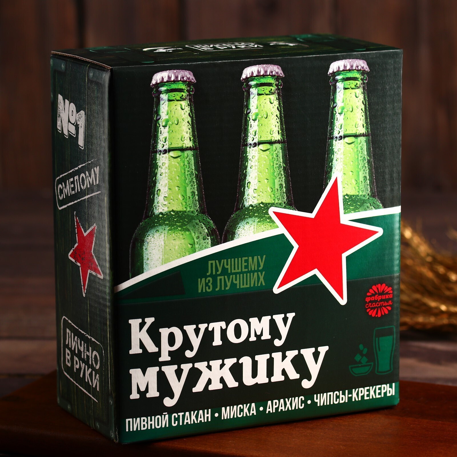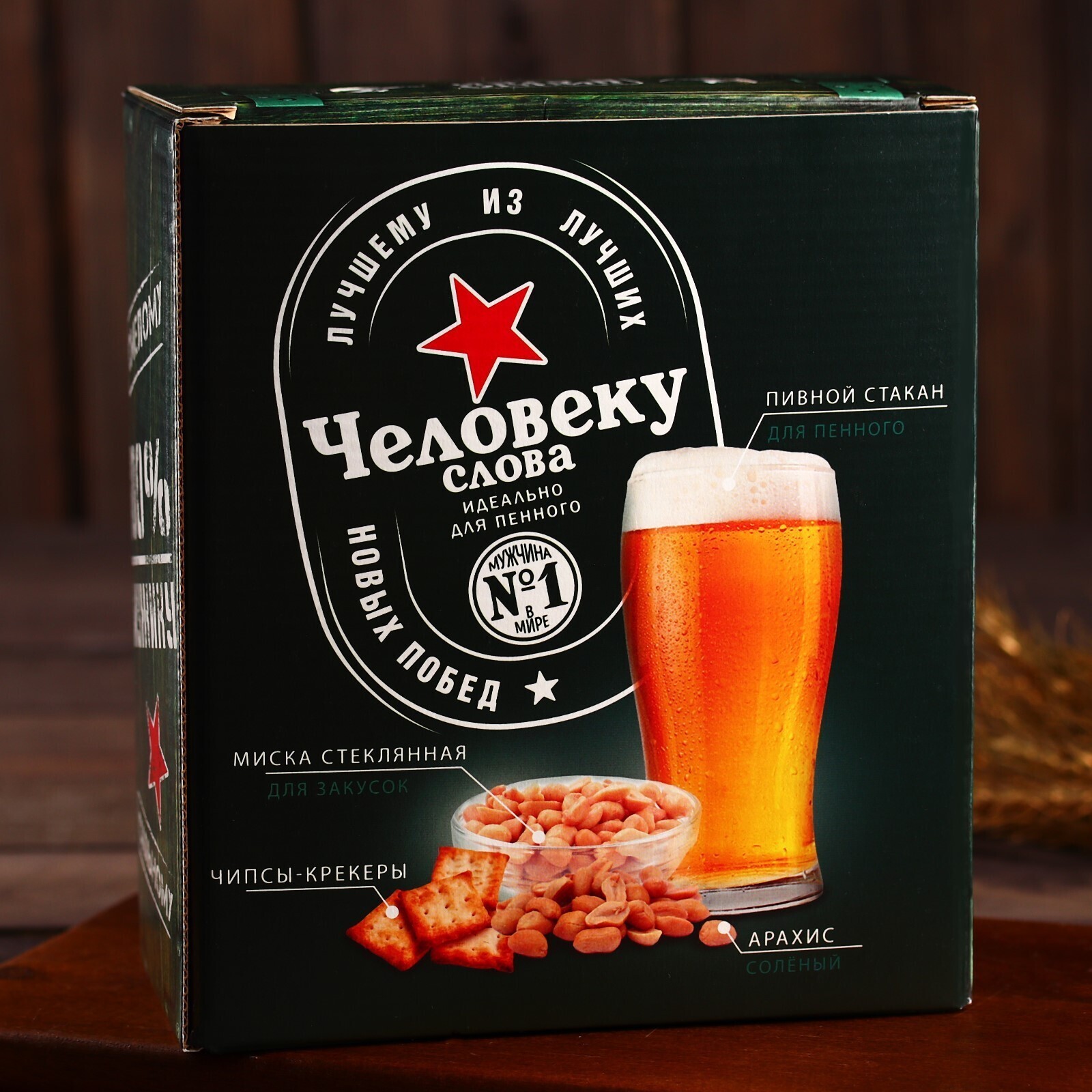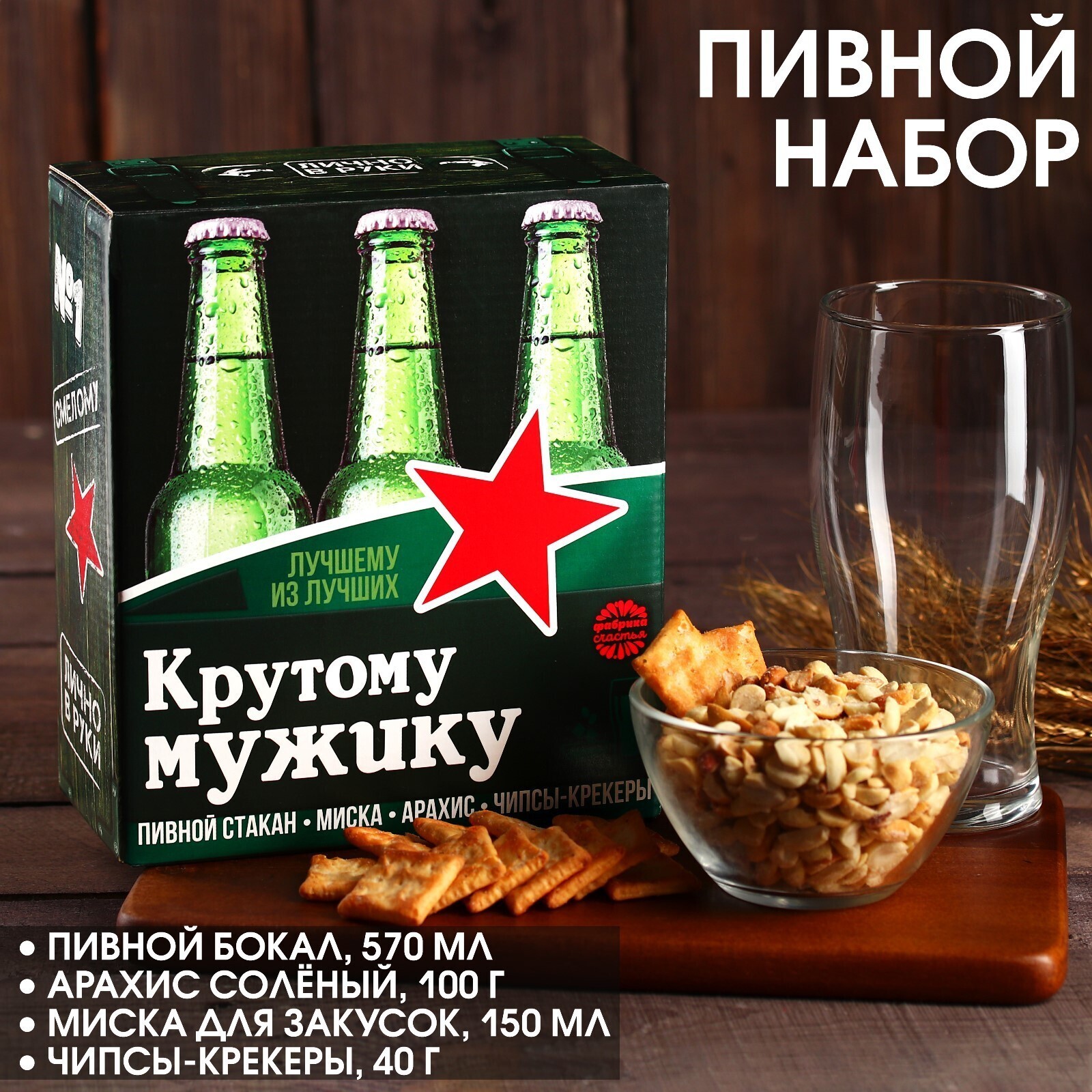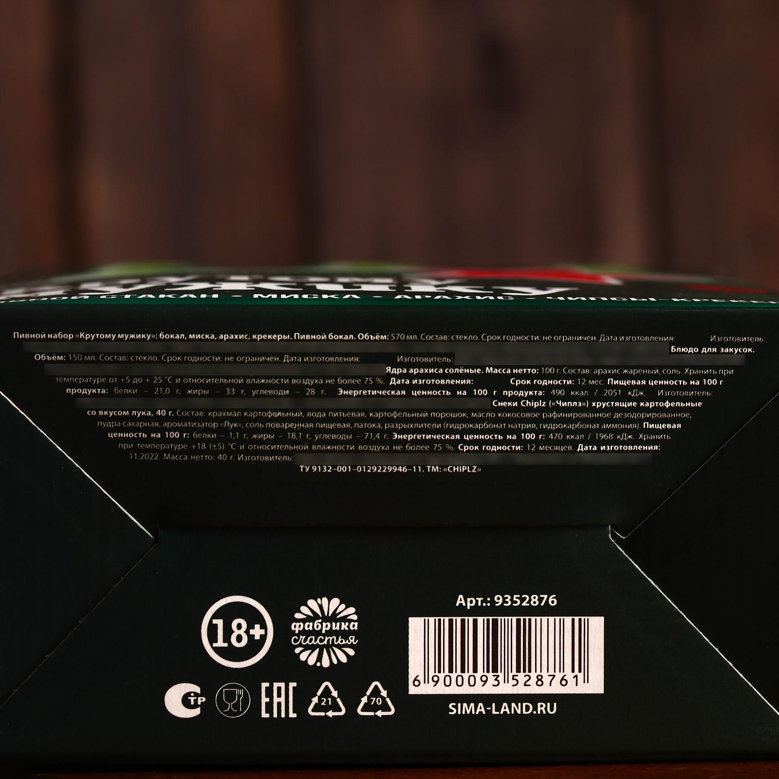 Пивной набор «Крутому мужику», миска, бокал 570 мл,арахис 100 г, крекеры 40 г.