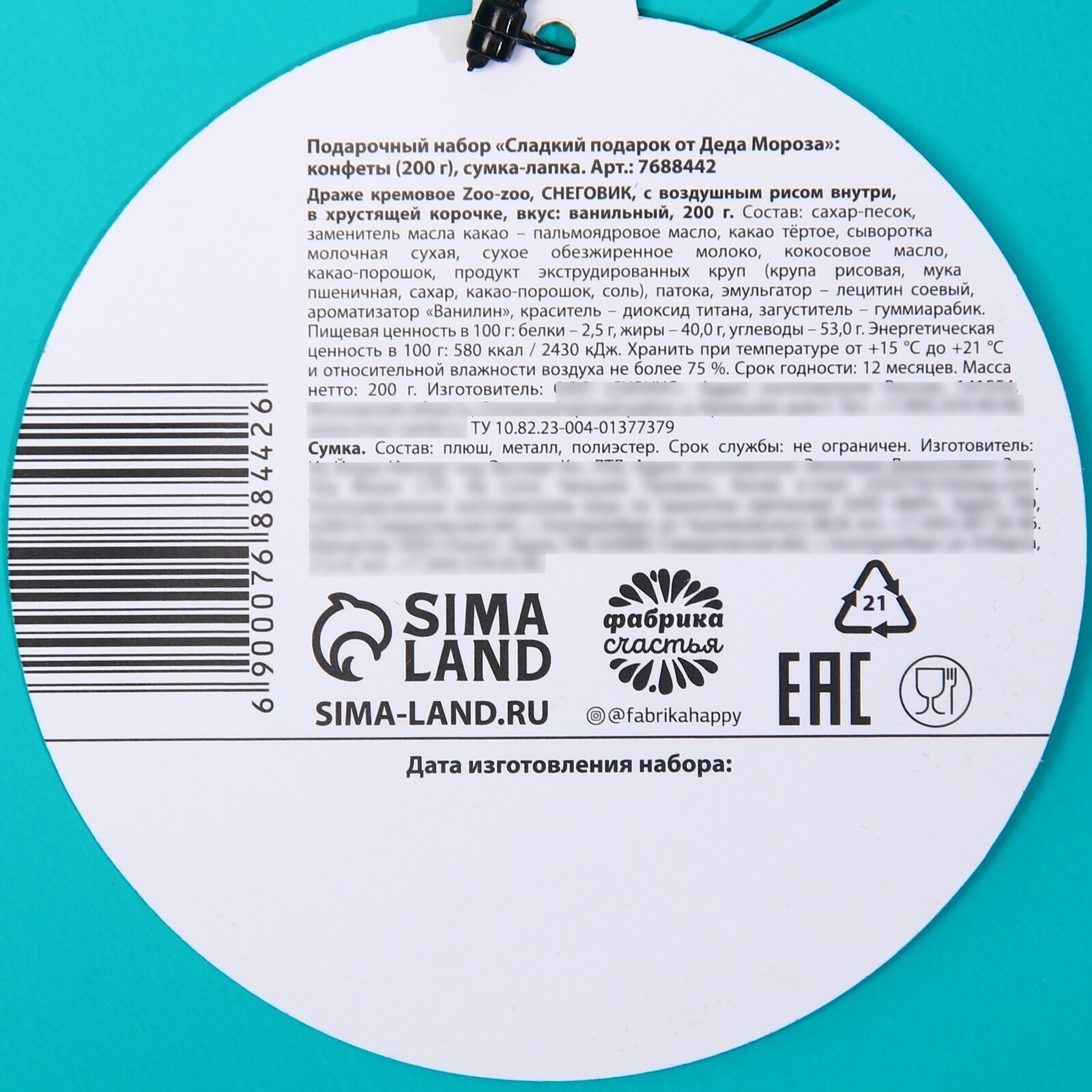 Подарочный набор «Сладкий подарок от Деда Мороза»: конфеты 200 г., сумка-лапка