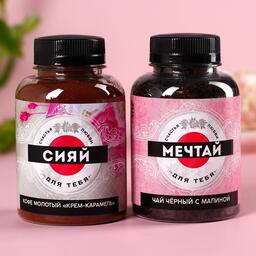 Подарочный набор «Самой прекрасной», чай чёрный с малиной 50 г., кофе молотый 100 г.