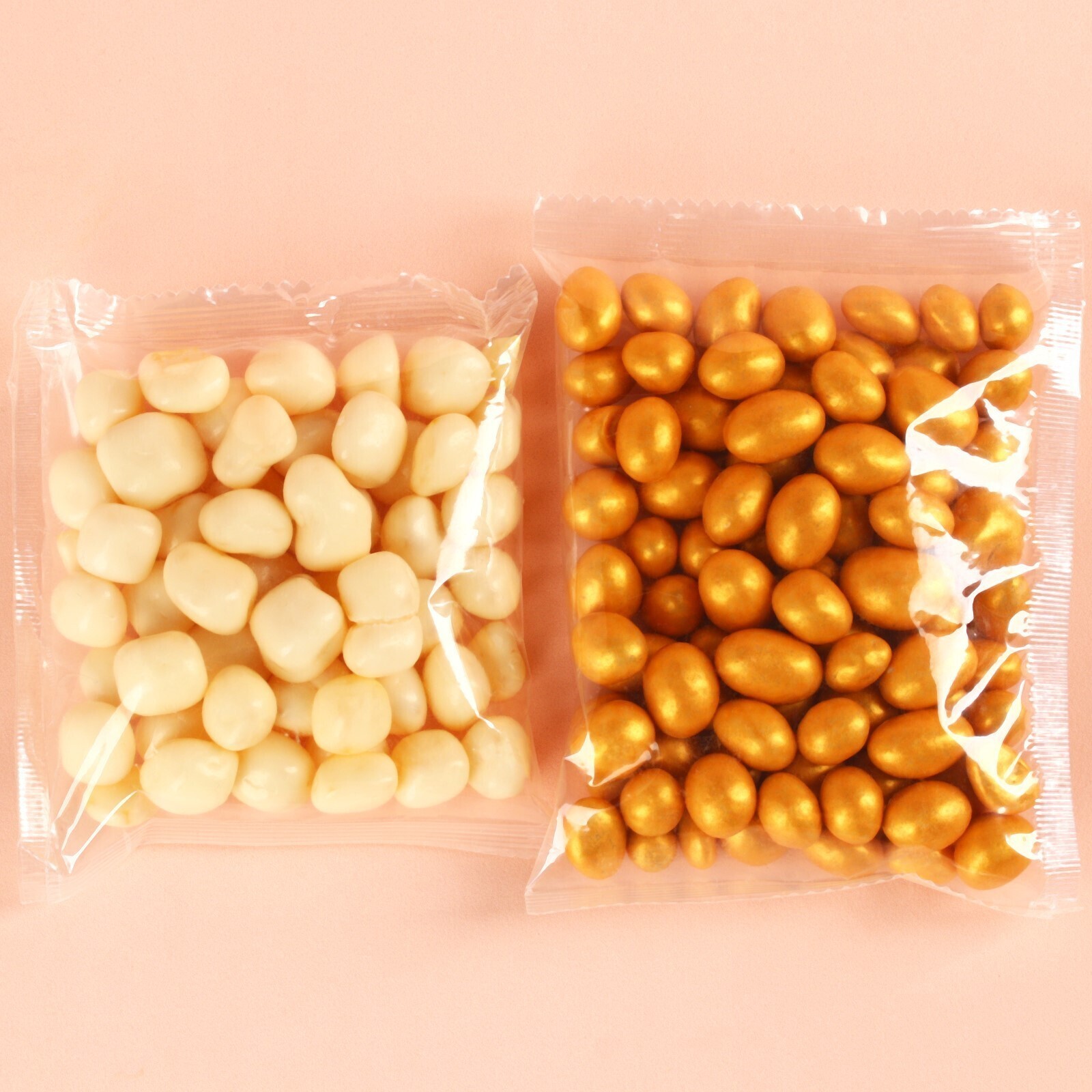 Состав: шоколадная глазурь белая (сахар, какао-масло, сухие молочные продукты, эквивалент какао-масла, эмульгатор – лецитин, ароматизатор «Ванилин»), ядро арахиса жареного отбелённого, глянец – комплексная пищевая добавка «Капол».