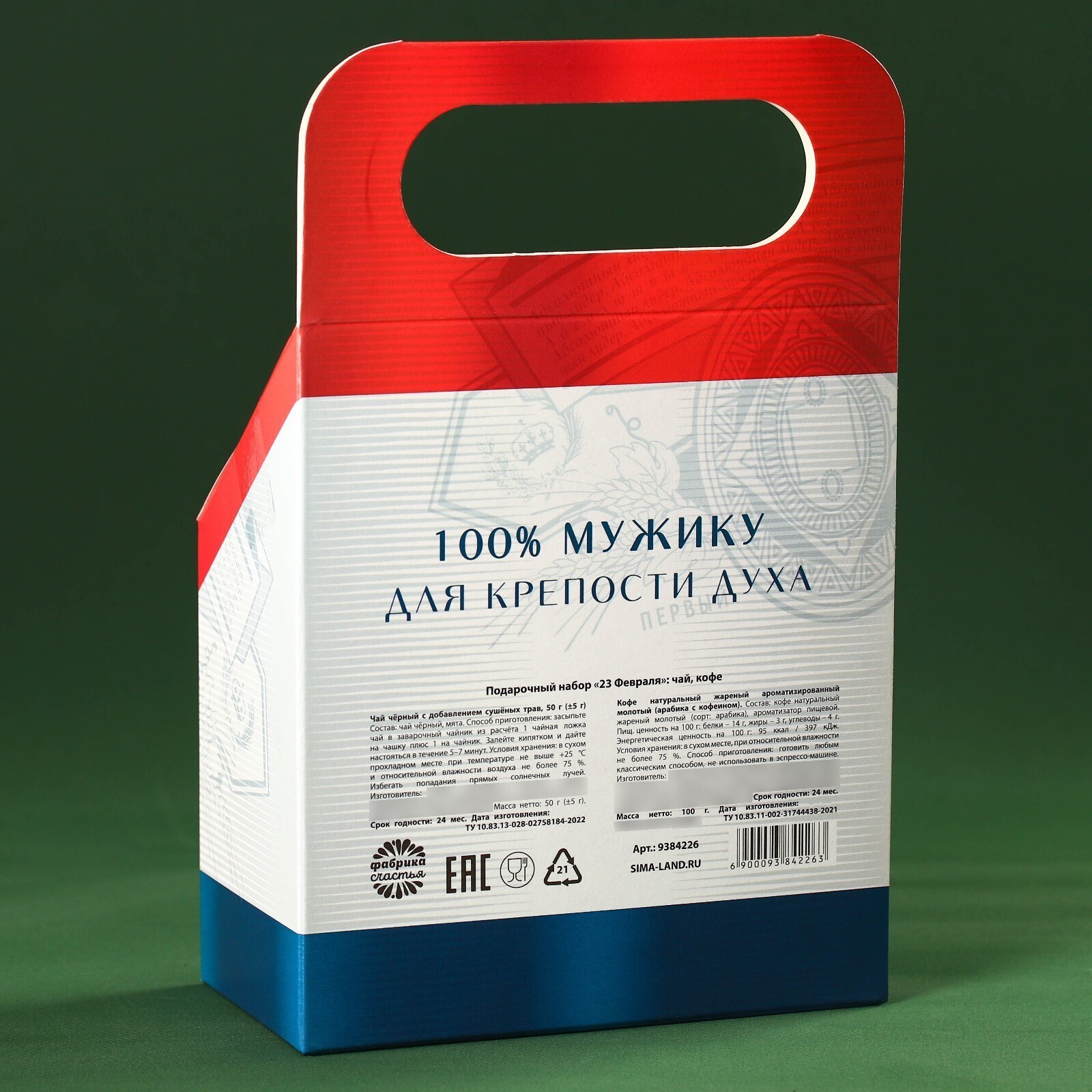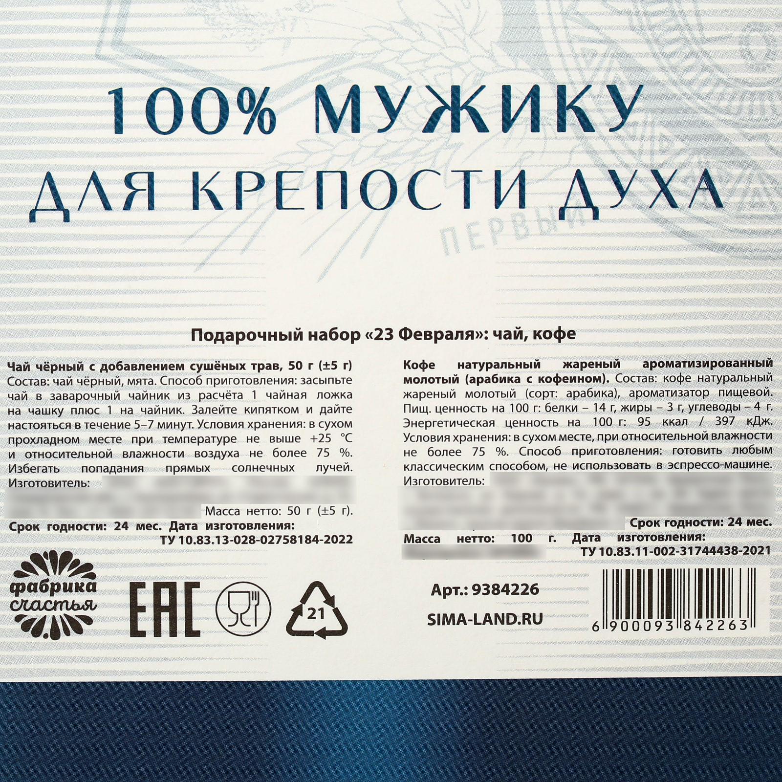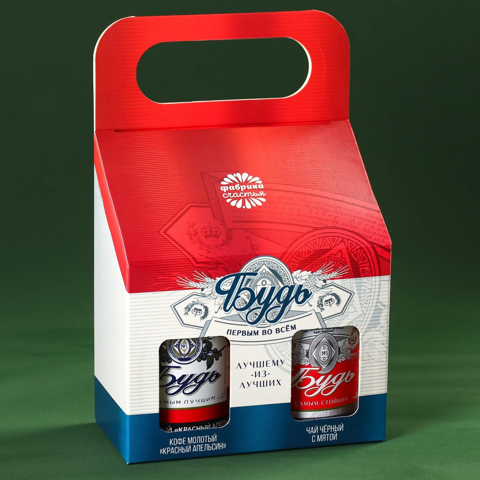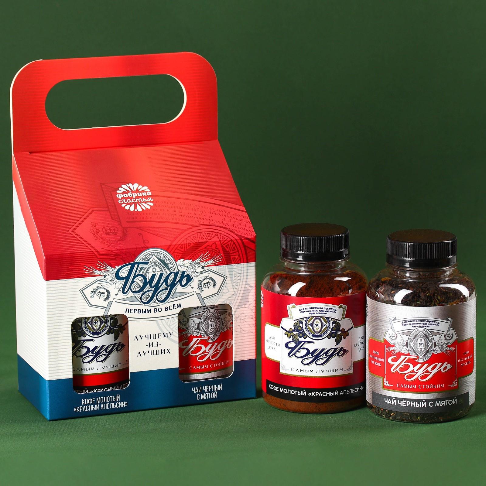 Подарочный набор «23 февраля», чай чёрный с травами 50 г., кофе молотый, вкус: красный апельсин, 100 г.
