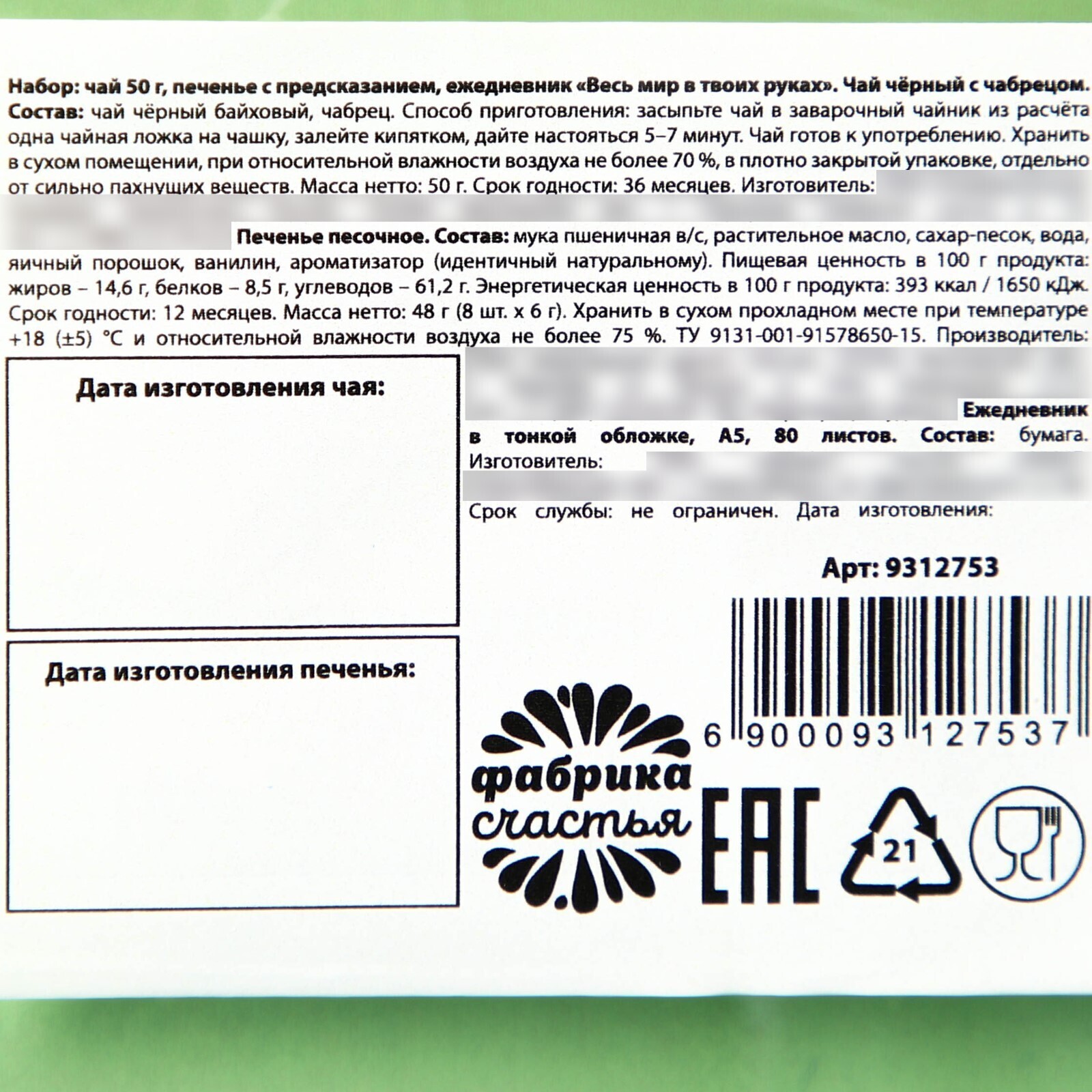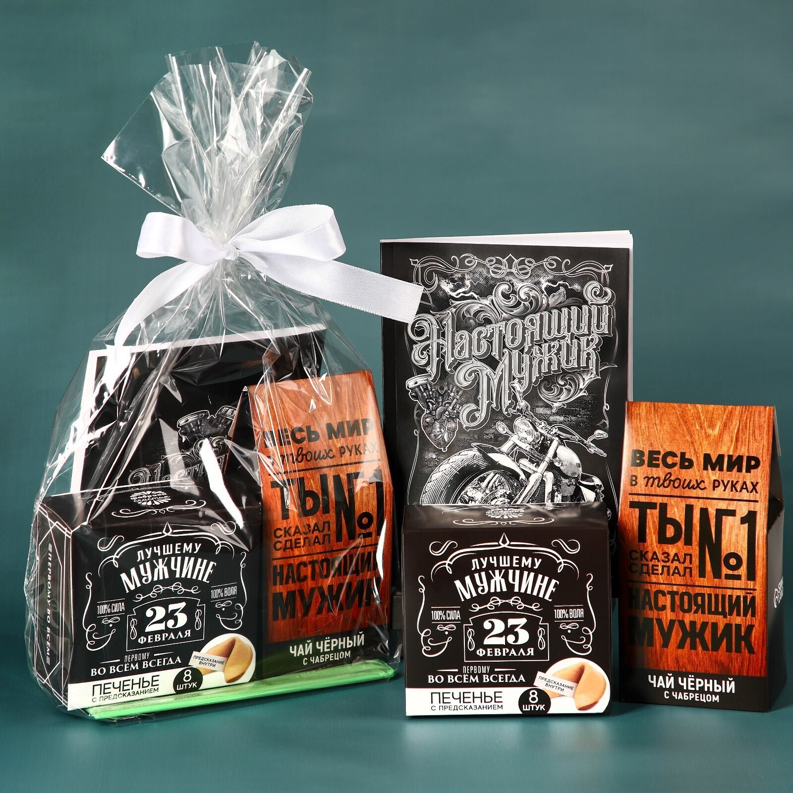 Набор: чай 50 г, печенье с предсказанием, ежедневник "Весь мир в твоих руках"