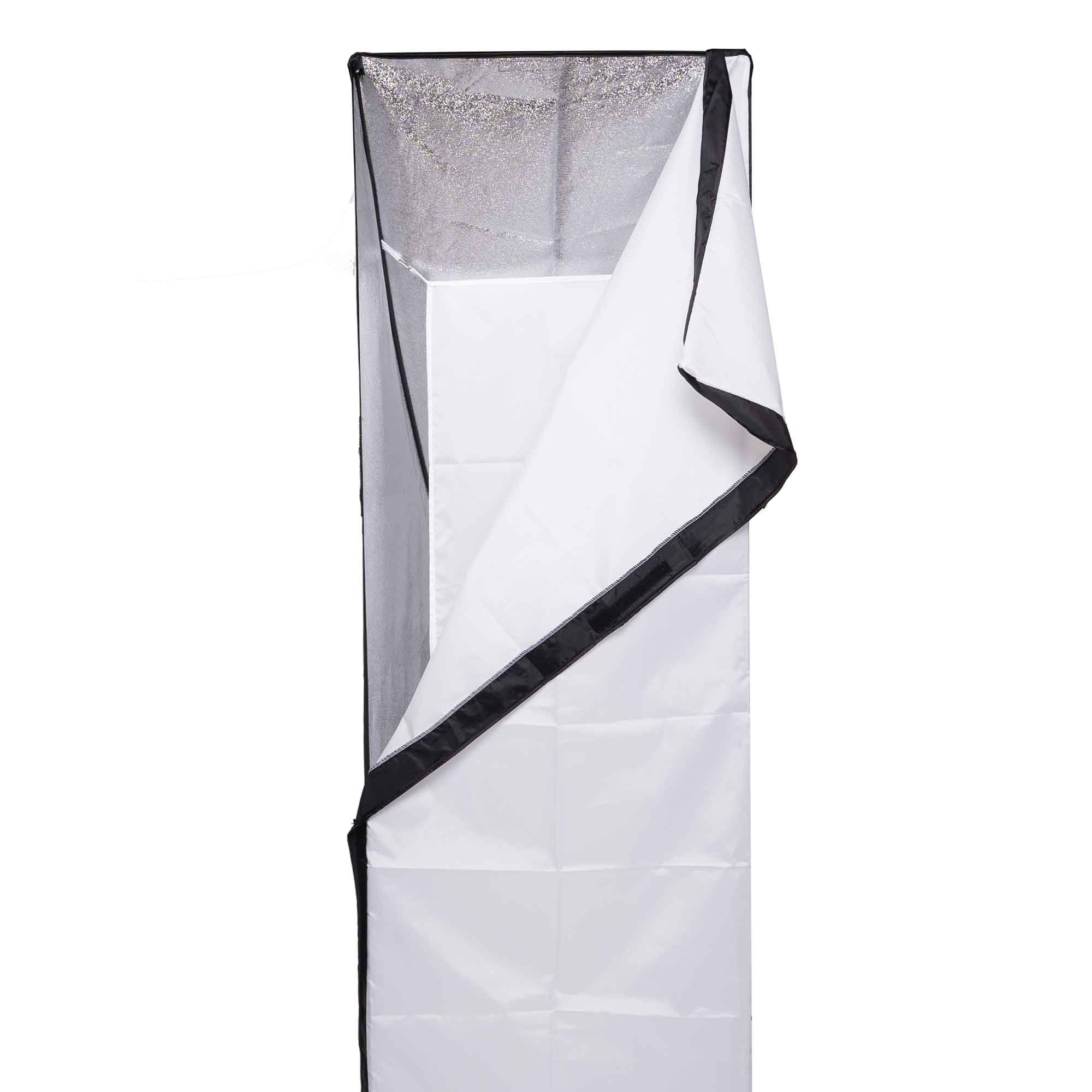 Стофтбокс FEA-SBII 30120 BW – новый световой прямоугольный модификатор Falcon Eyes для управления световым потоком от импульсных вспышек и светодиодных LED осветителей с байонетом Bowens. Софтбокс-стрипбокс помогает создать мягкое рассеянное освещение, предотвращая появление глубоких теней или бликов. Закрытая конструкция позволяет получить равномерный направленный поток света и избежать нежелательных потерь светового потока. Софтбоксы дают «живой» блик в глазах и на поверхностях объекта, имитирующий естественное освещение. Благодаря универсальности и компактности, софтбоксы серии Falcon Eyes FEA-SBII BW могут использоваться в студии и на улице. Стрипбоксы подойдут для использования в портретной и предметной фотографии, в том числе ростовых портретов и крупных предметов. Размер софтбокса 30х120см. Световой модификатор состоит из тента-отражателя, внешнего и внутреннего тканевых рассеивателей (диффузоров), байонетного кольца (крепления) и четырех стальных спиц. В комплект также входит чехол для хранения и транспортировки софтбокса.