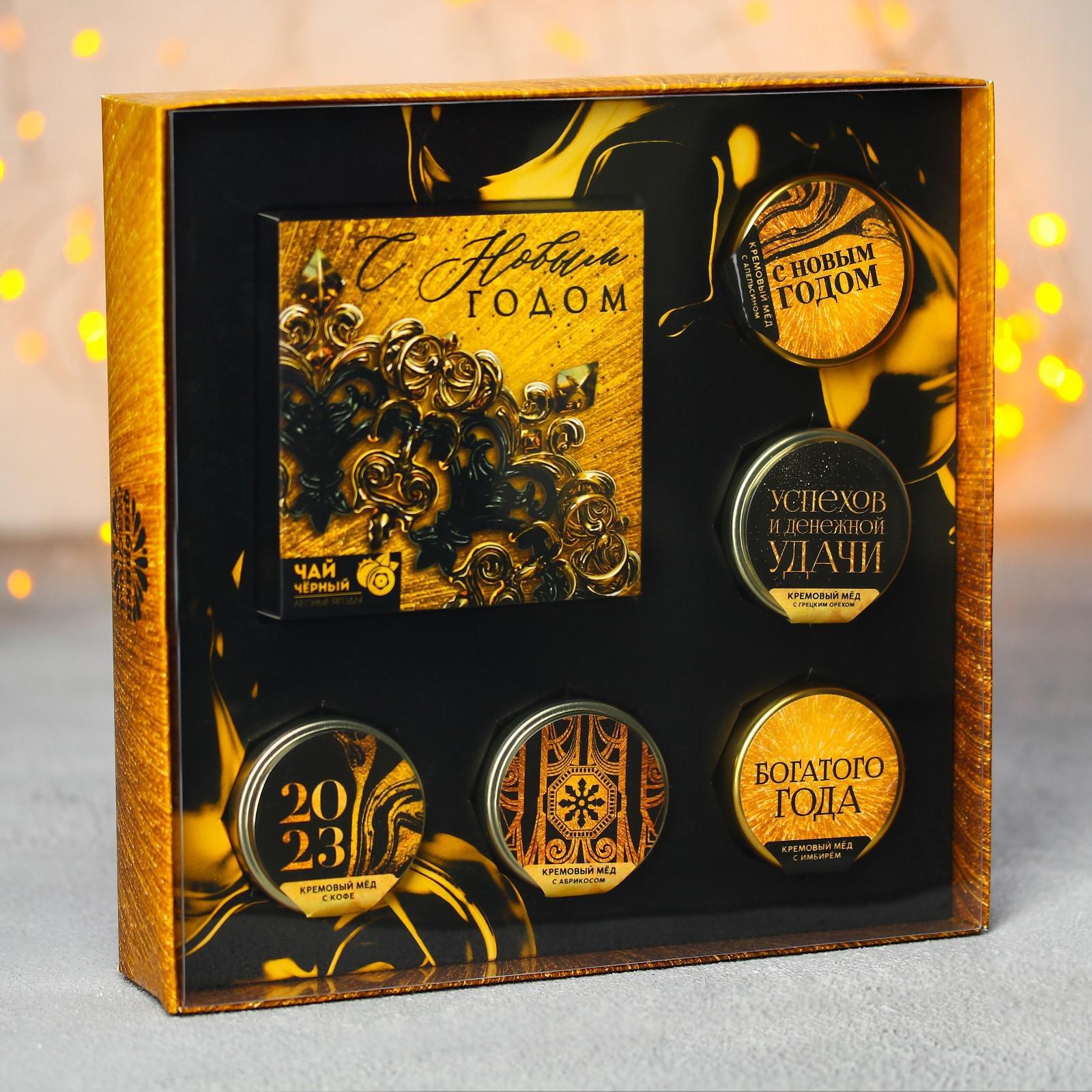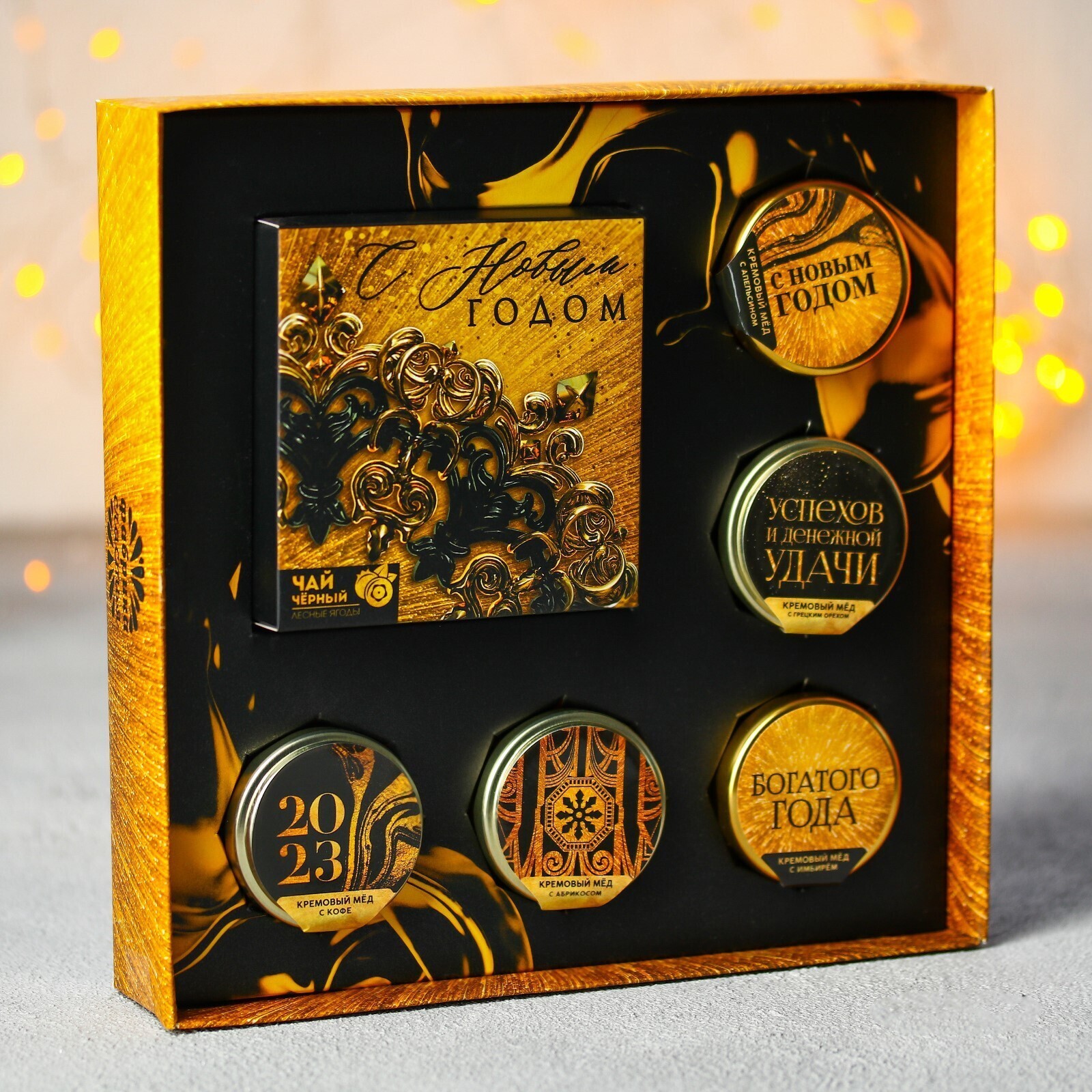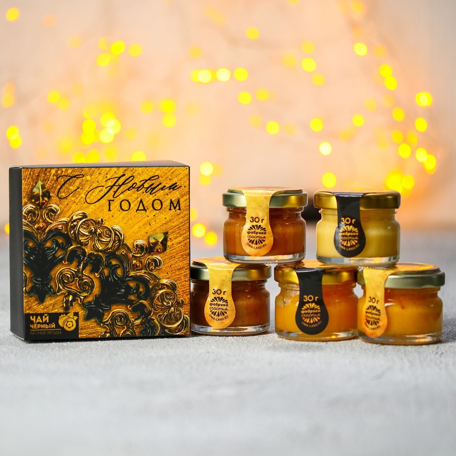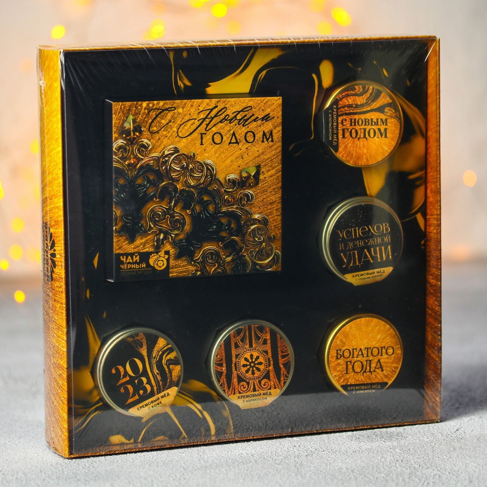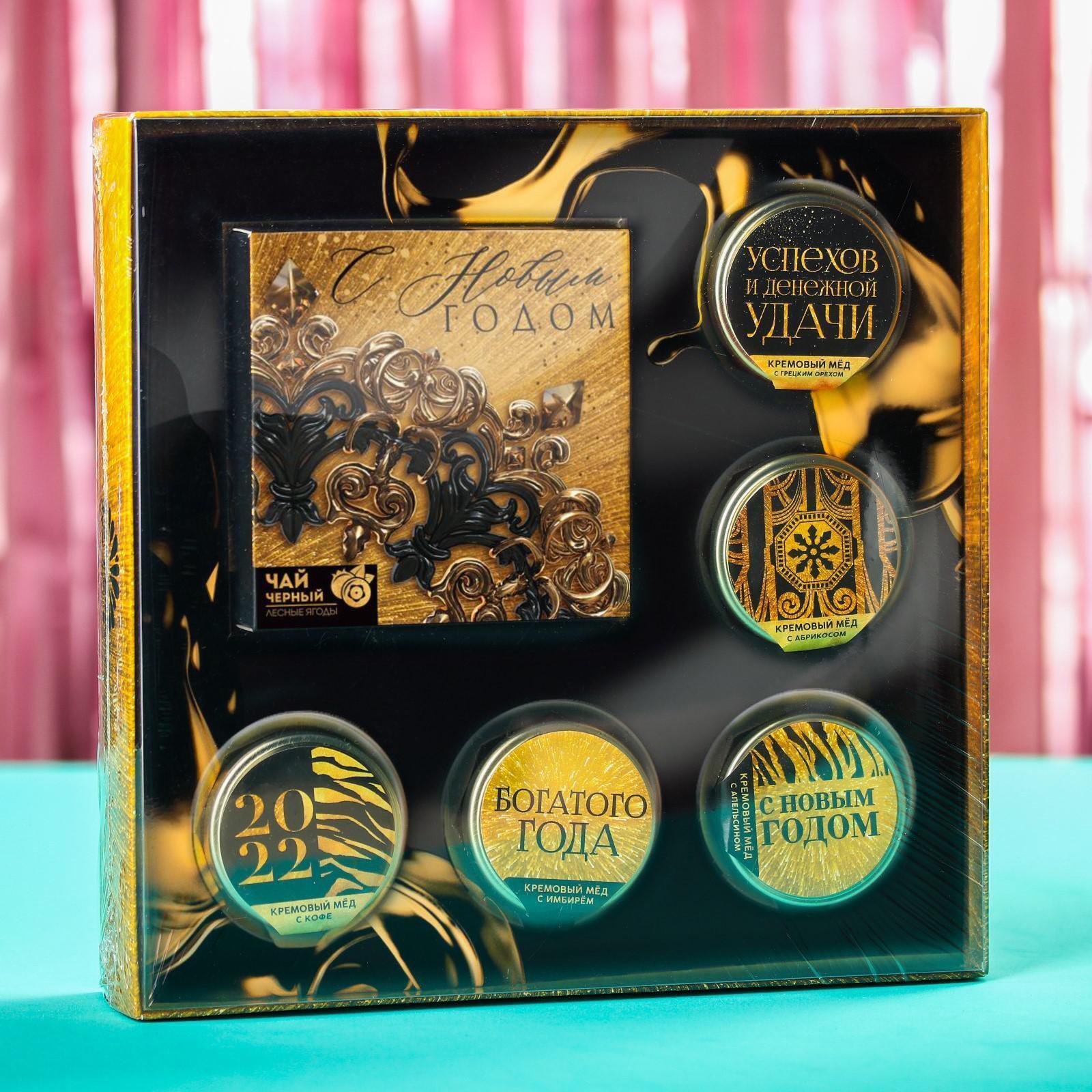 Подарочный набор «С Новым годом»: чай чёрный «Лесные ягоды» (50 г.), крем-мед (5 шт. x 30 г.)