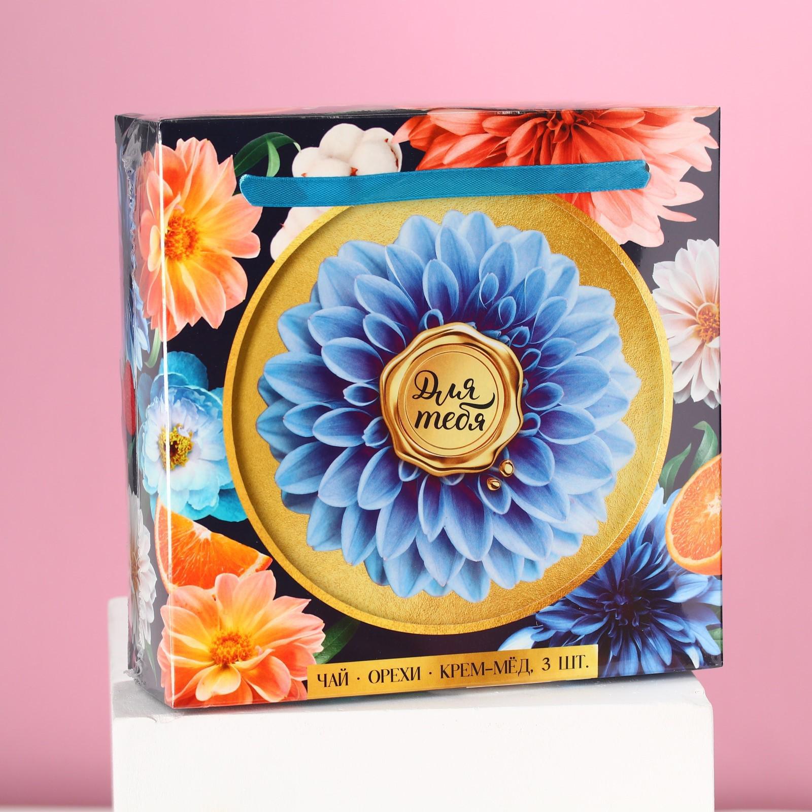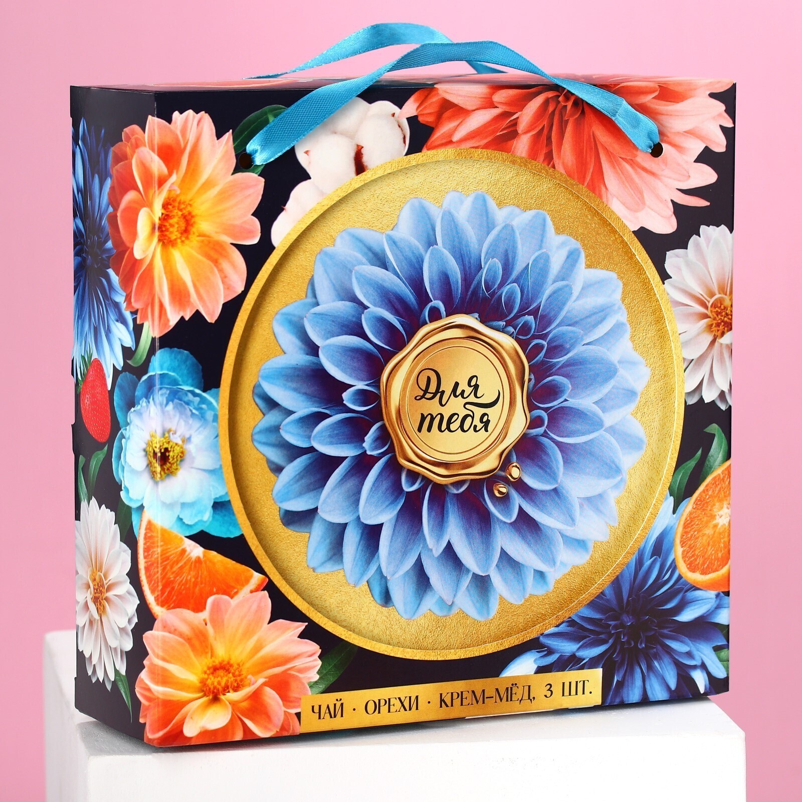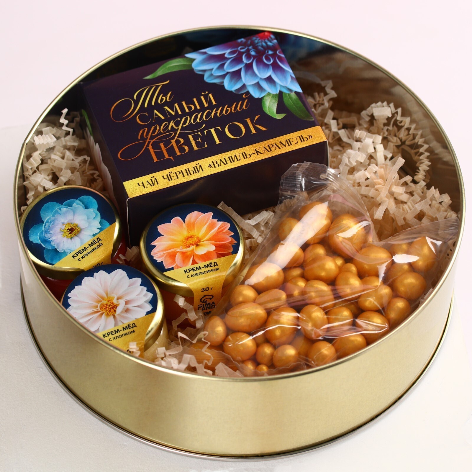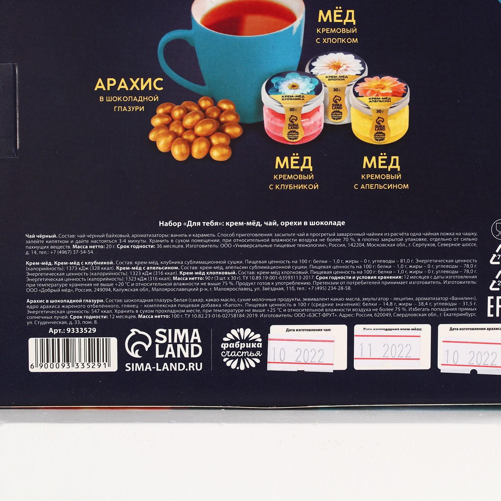 Подарочный набор «Для тебя», чай чёрный 20 г., крем-мёд с клубникой 30 г., крем-мёд с апельсном 30 г., крем-мёд с хлопком 30 г., арахис в глазури 100 г.