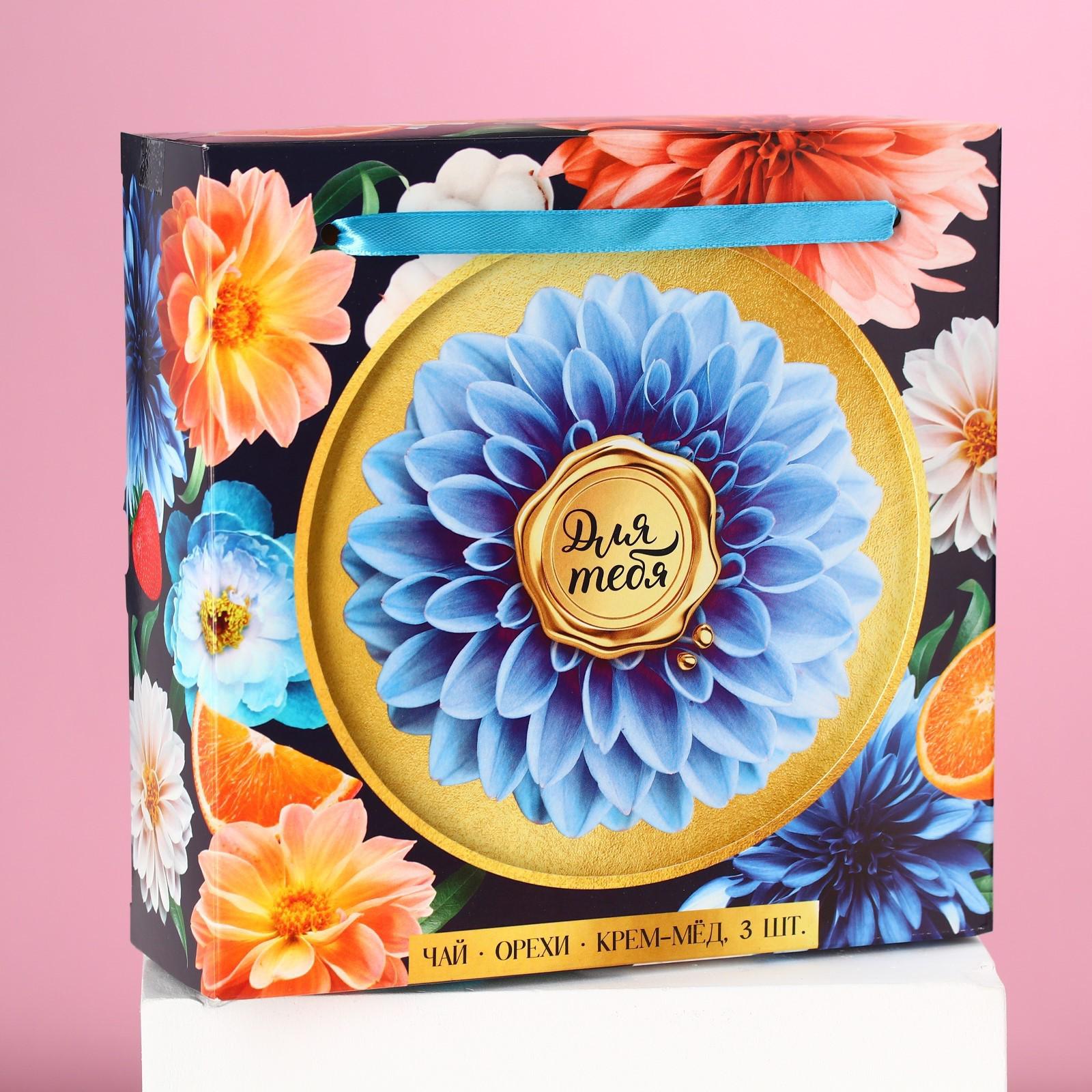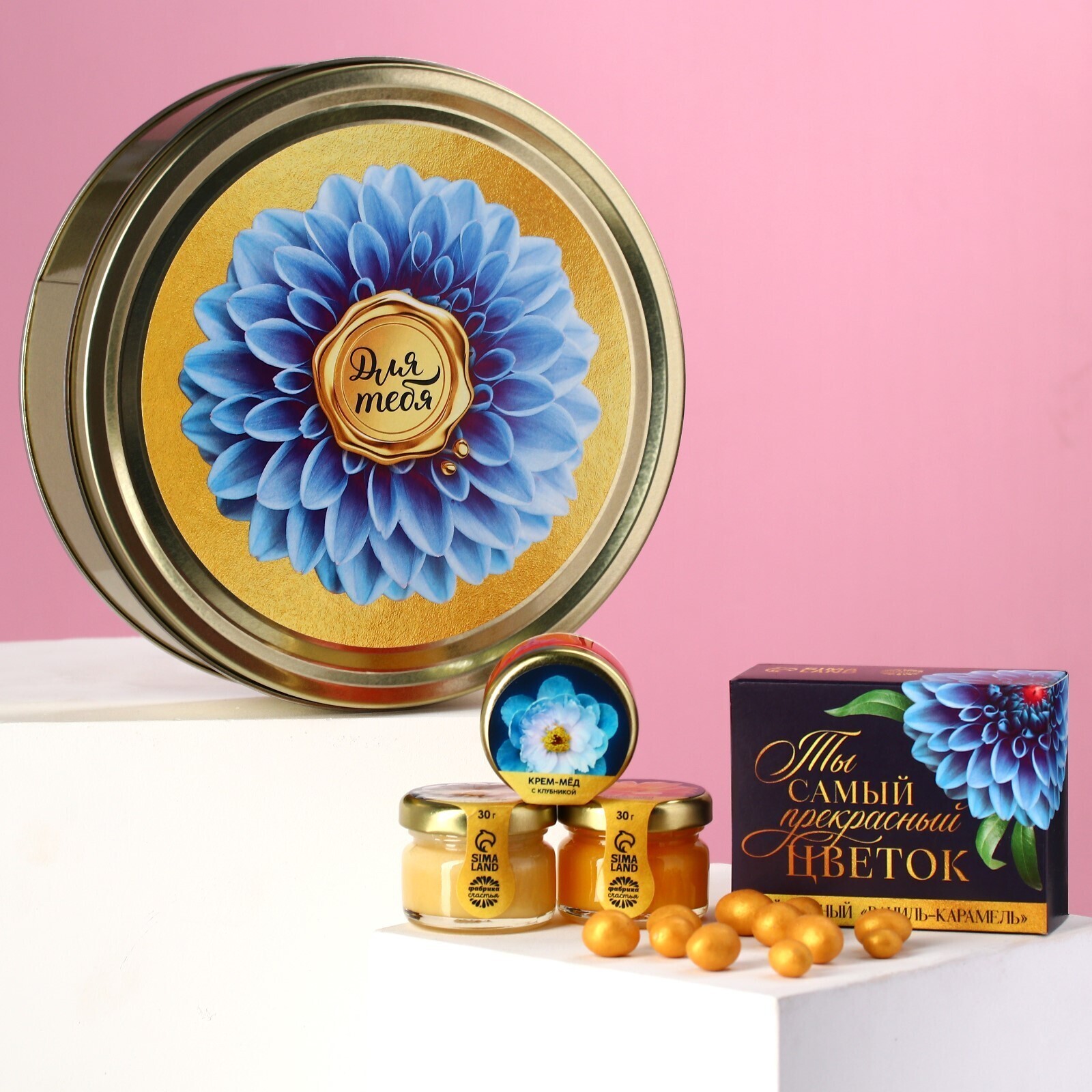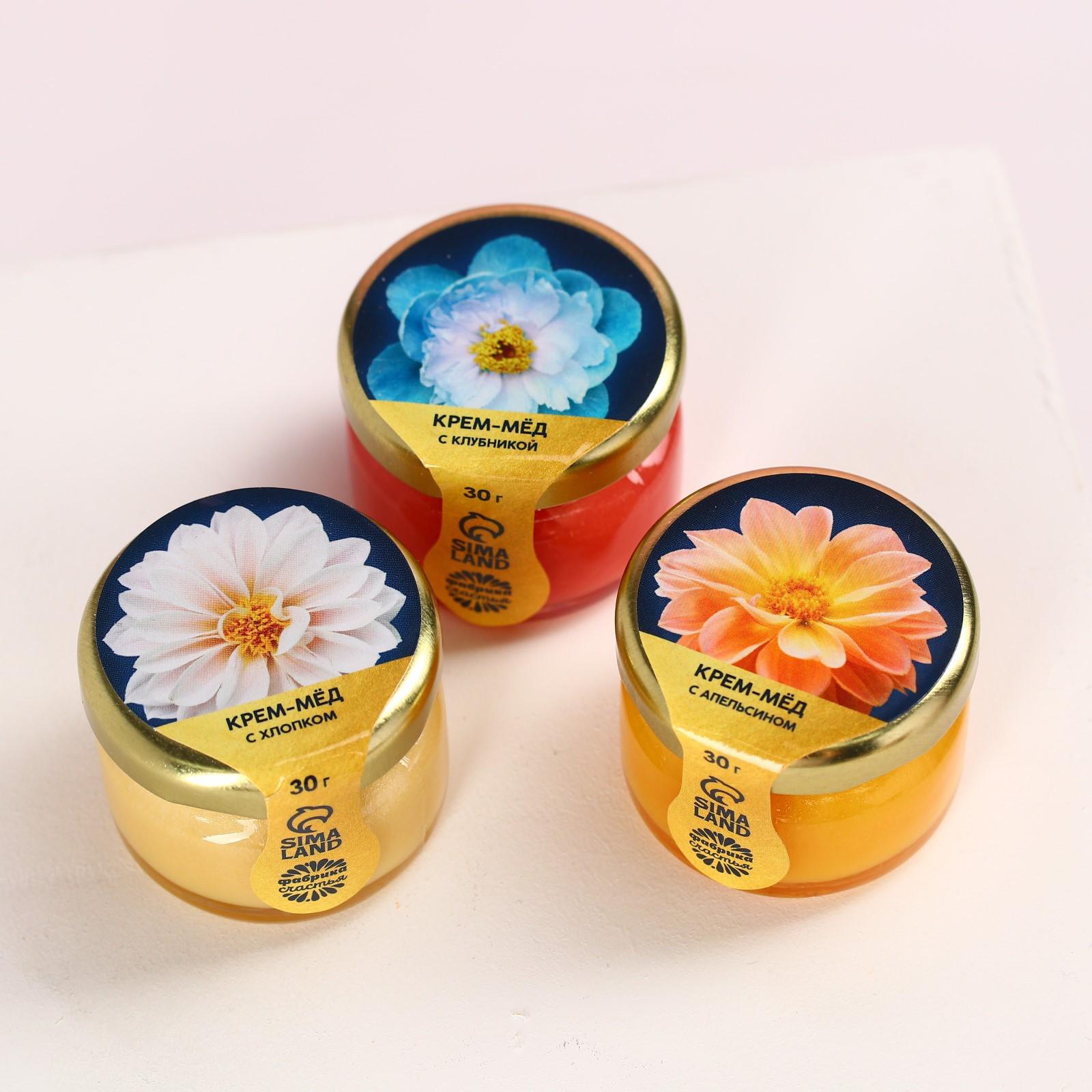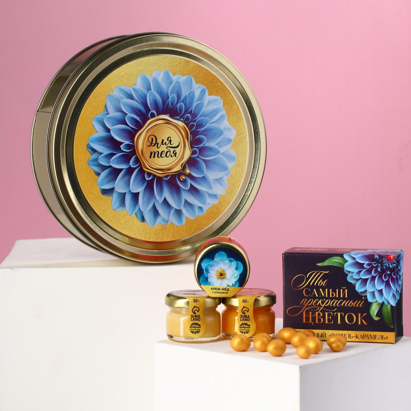 Подарочный набор «Для тебя», чай чёрный 20 г., крем-мёд с клубникой 30 г., крем-мёд с апельсном 30 г., крем-мёд с хлопком 30 г., арахис в глазури 100 г.