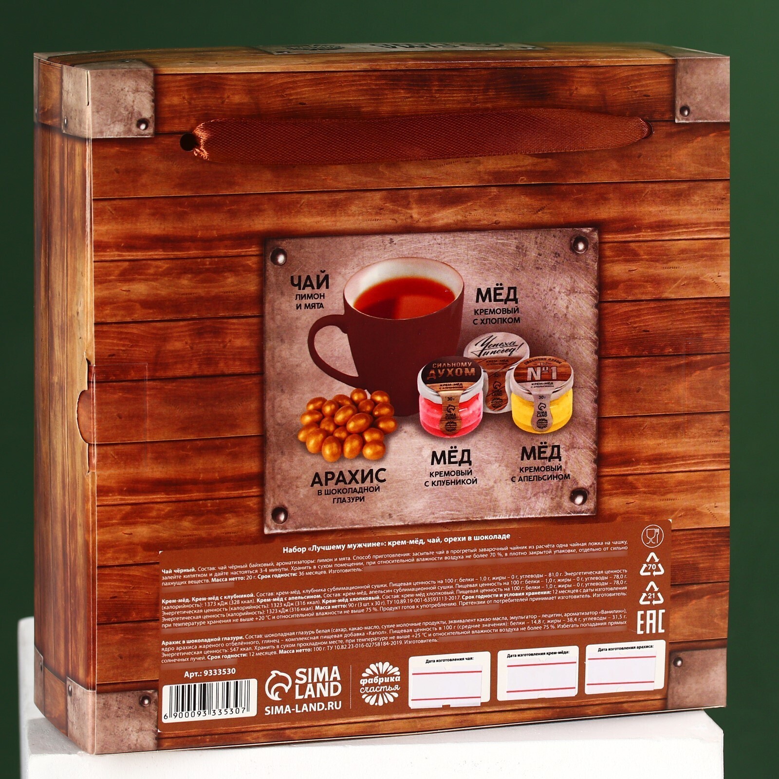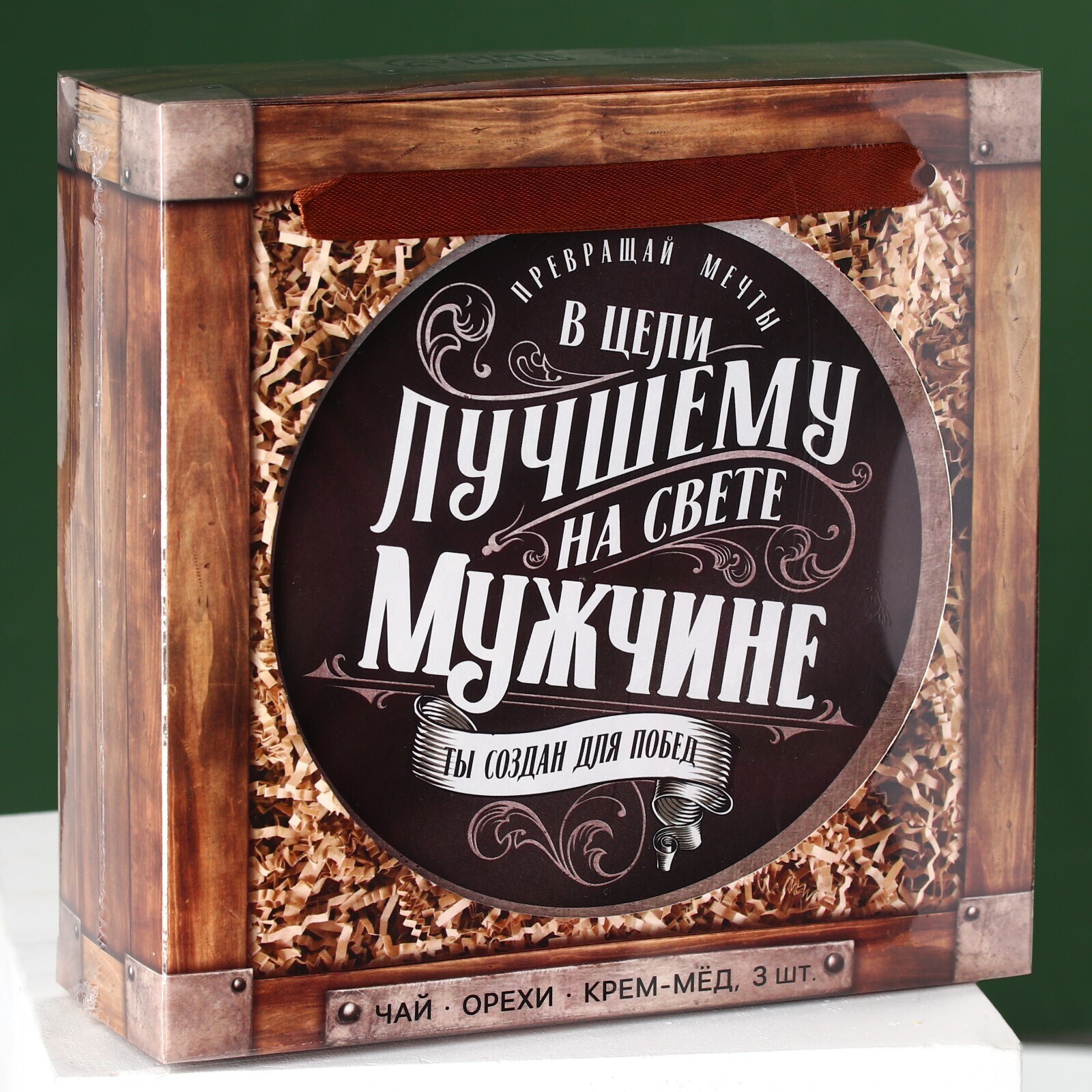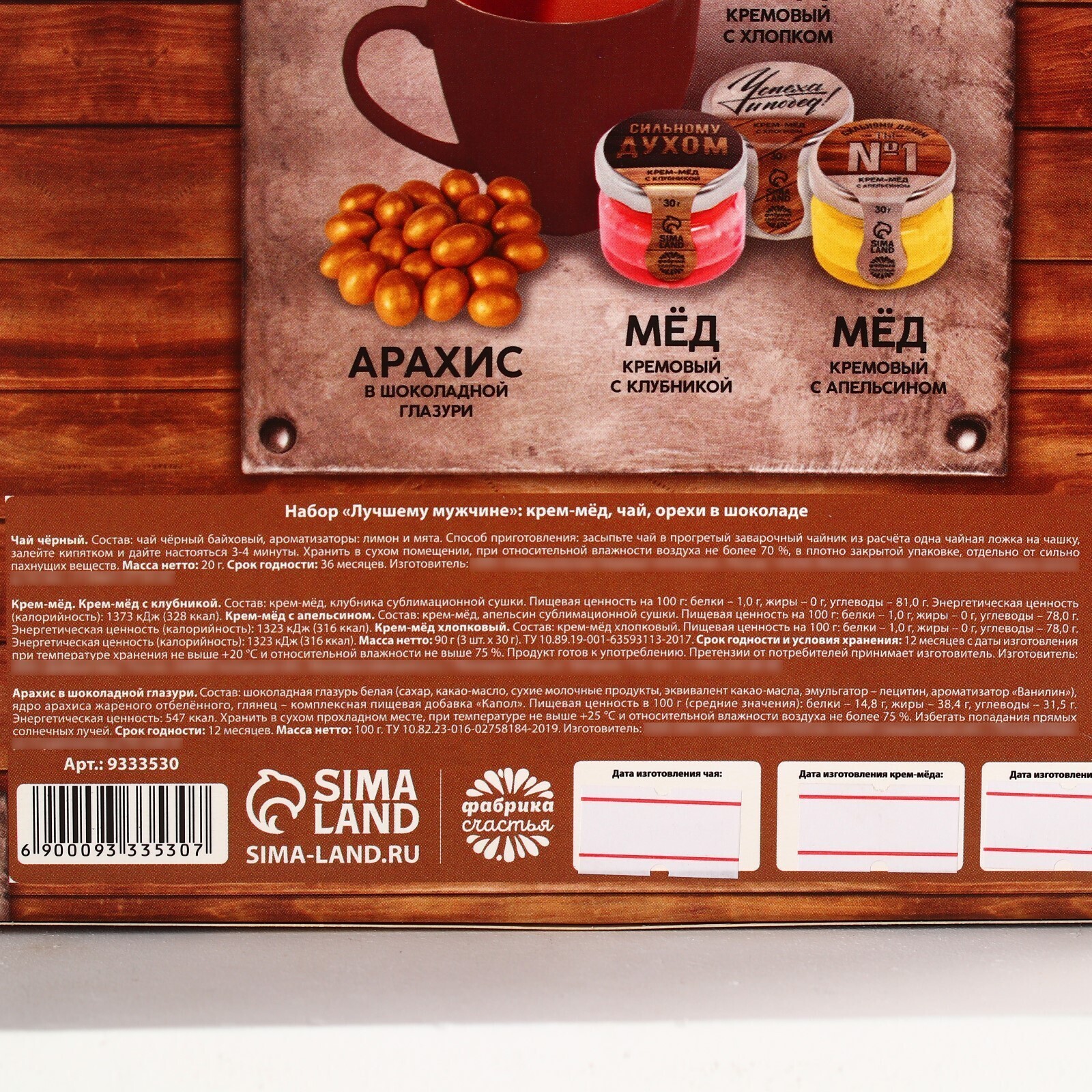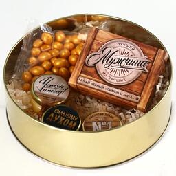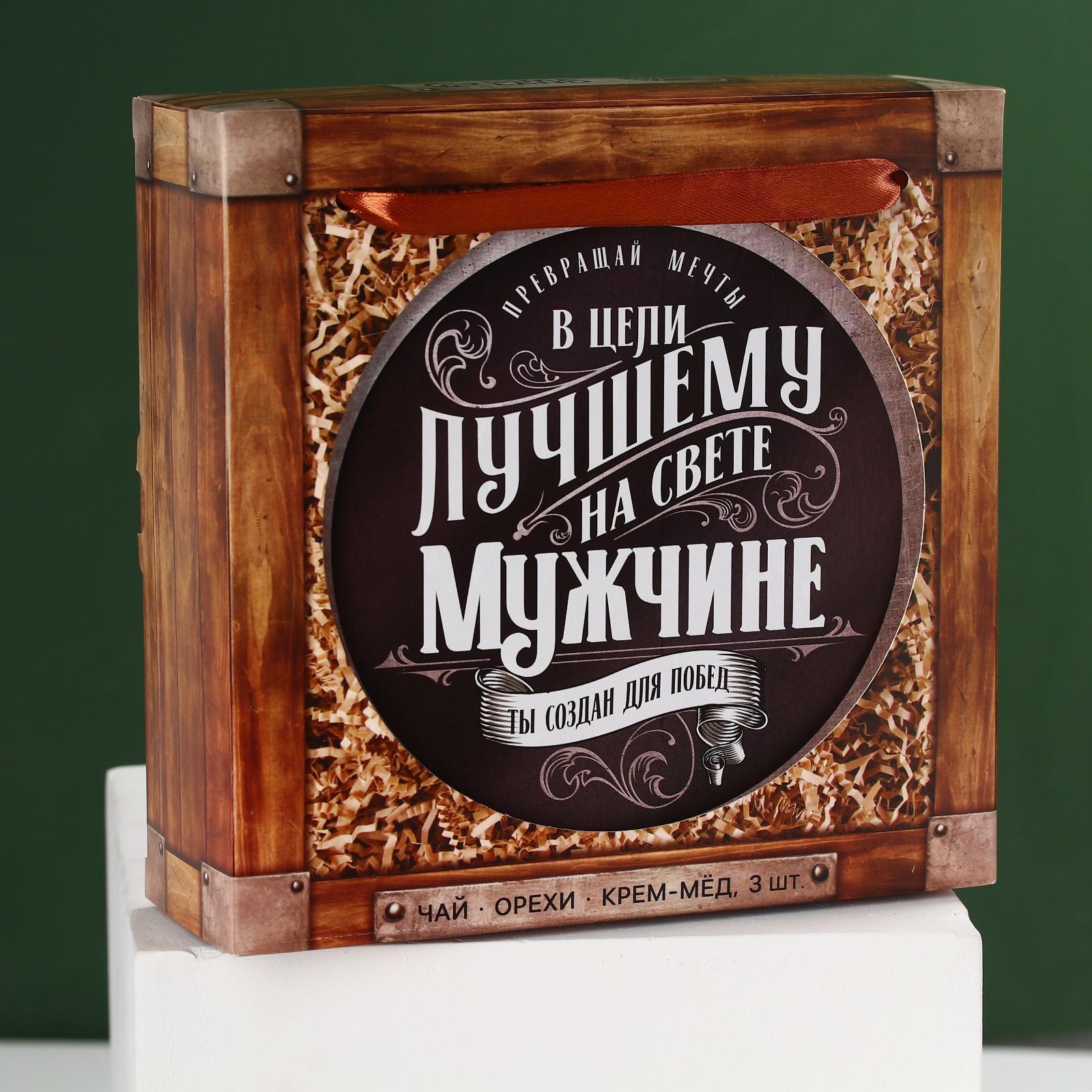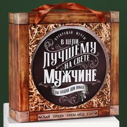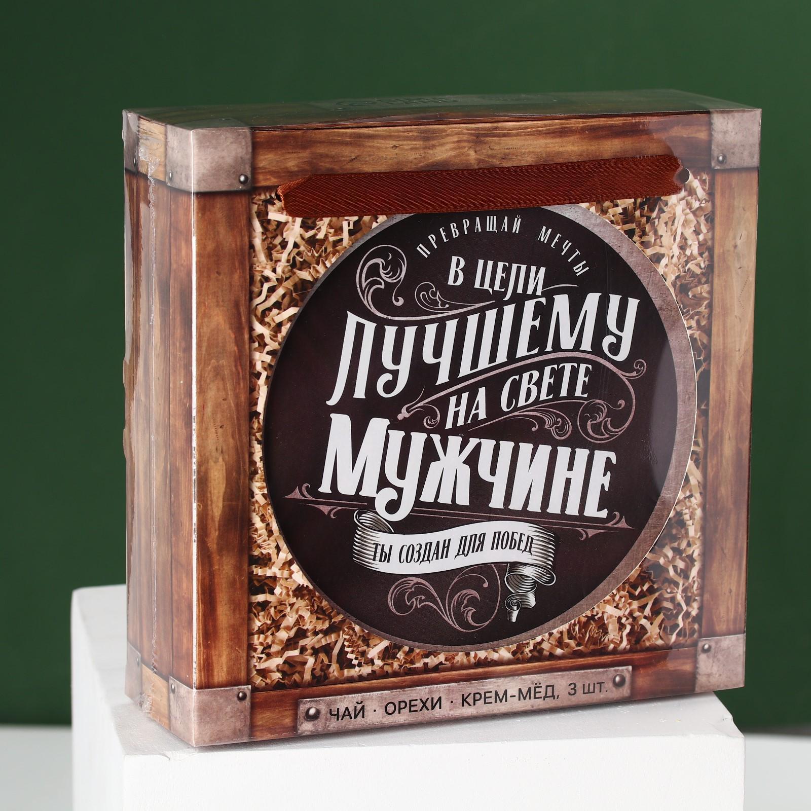 Набор «Лучшему мужчине»,чай чёрный со вкусом лимон и мята 20 г., крем-мёж с клубникой 30 г., крем-мёд с апельсином 30 г., крем-мёд с хлопком 30 г., арахис в глазури 100 г.
