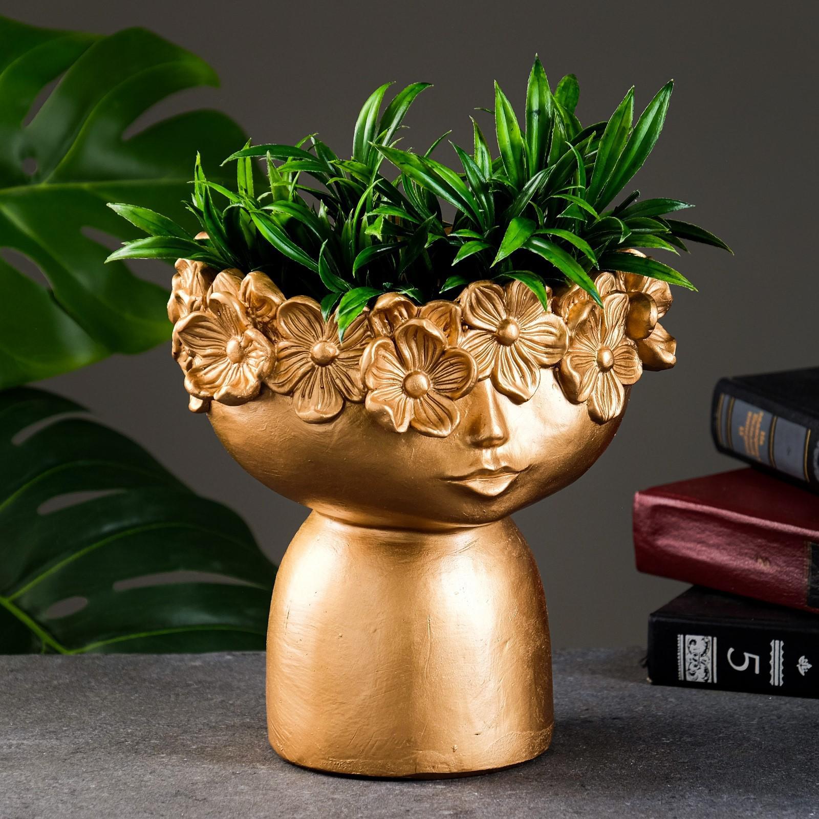 Кашпо - ваза "Мальчик с веночком" золотое, 19х19см