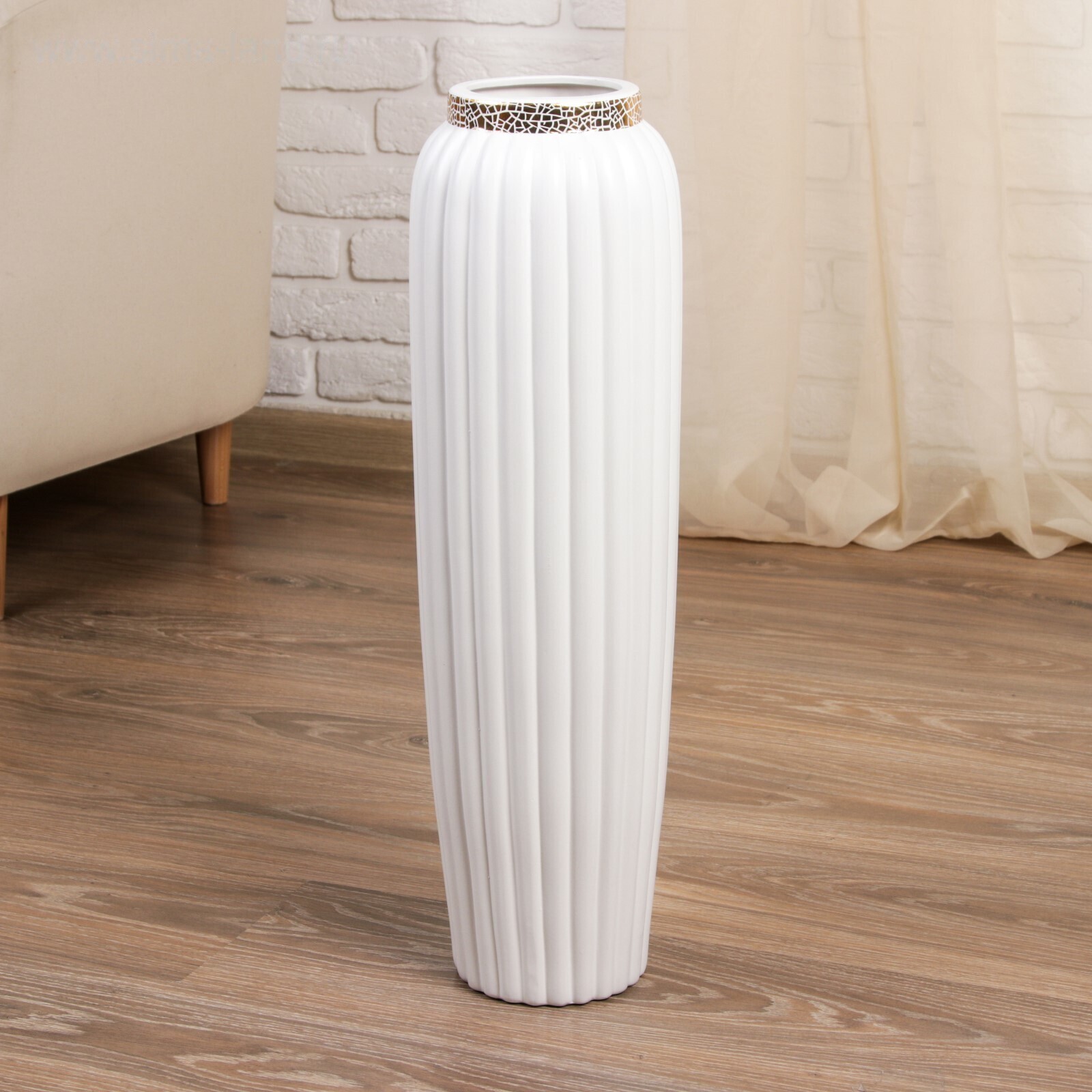 Ваза керамика напольная "Геометрия люкс" вертикаль, 60 см, белый