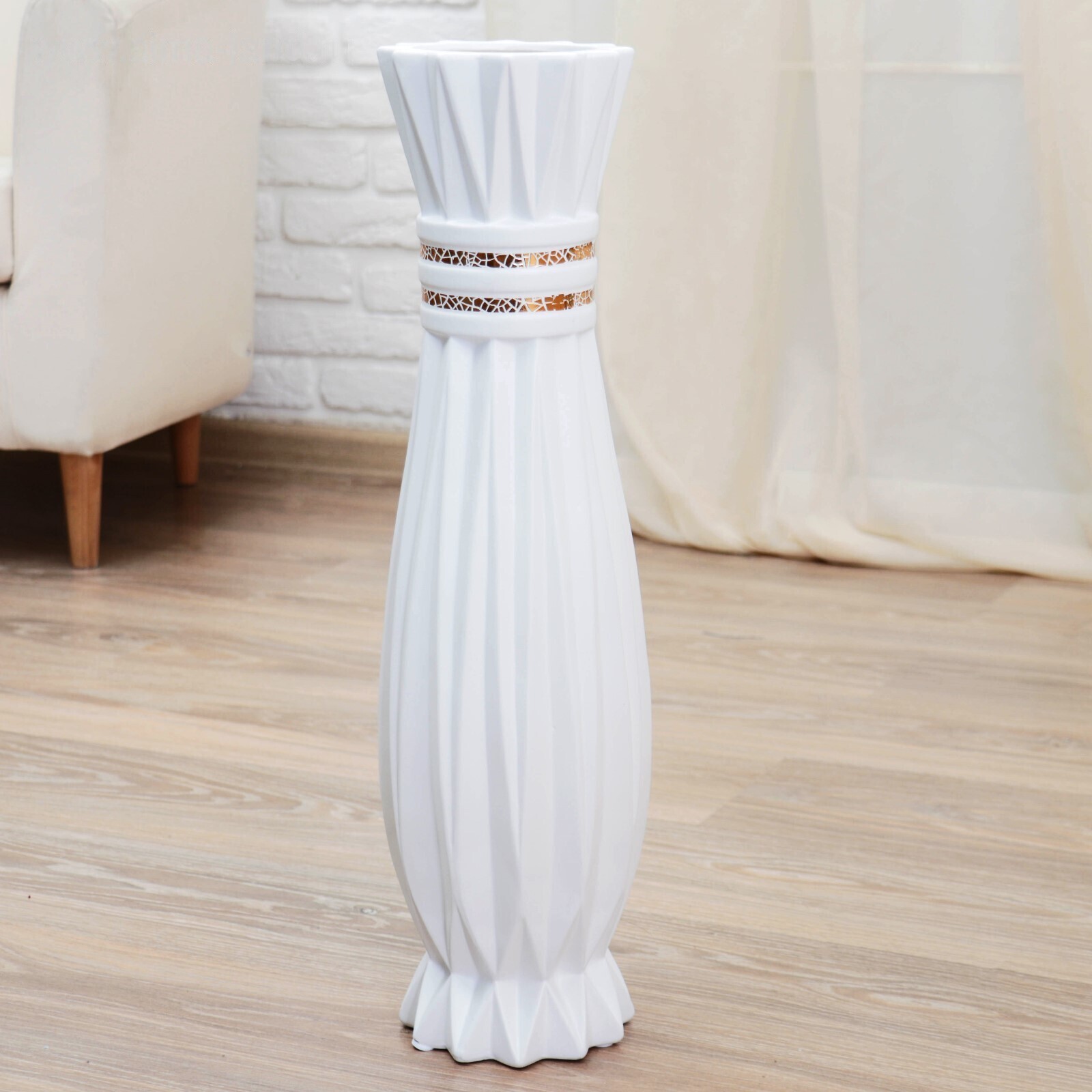 Ваза керамика напольная "Геометрия люкс" вертикальные полосы, 15х60 см, белый