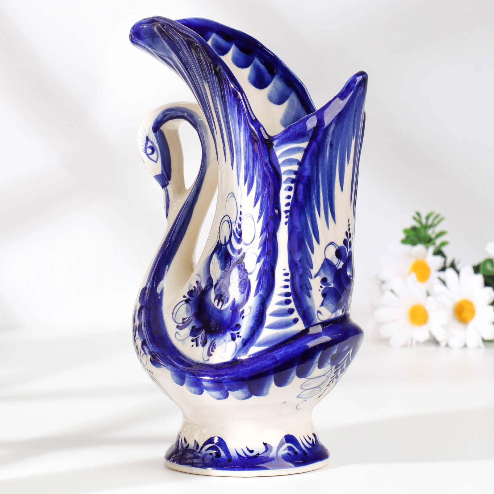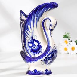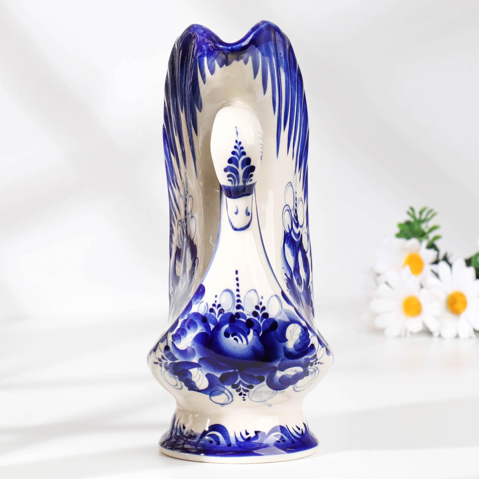 Ваза "Лебедь", 600 мл, 22х12 см, гжель, фарфор