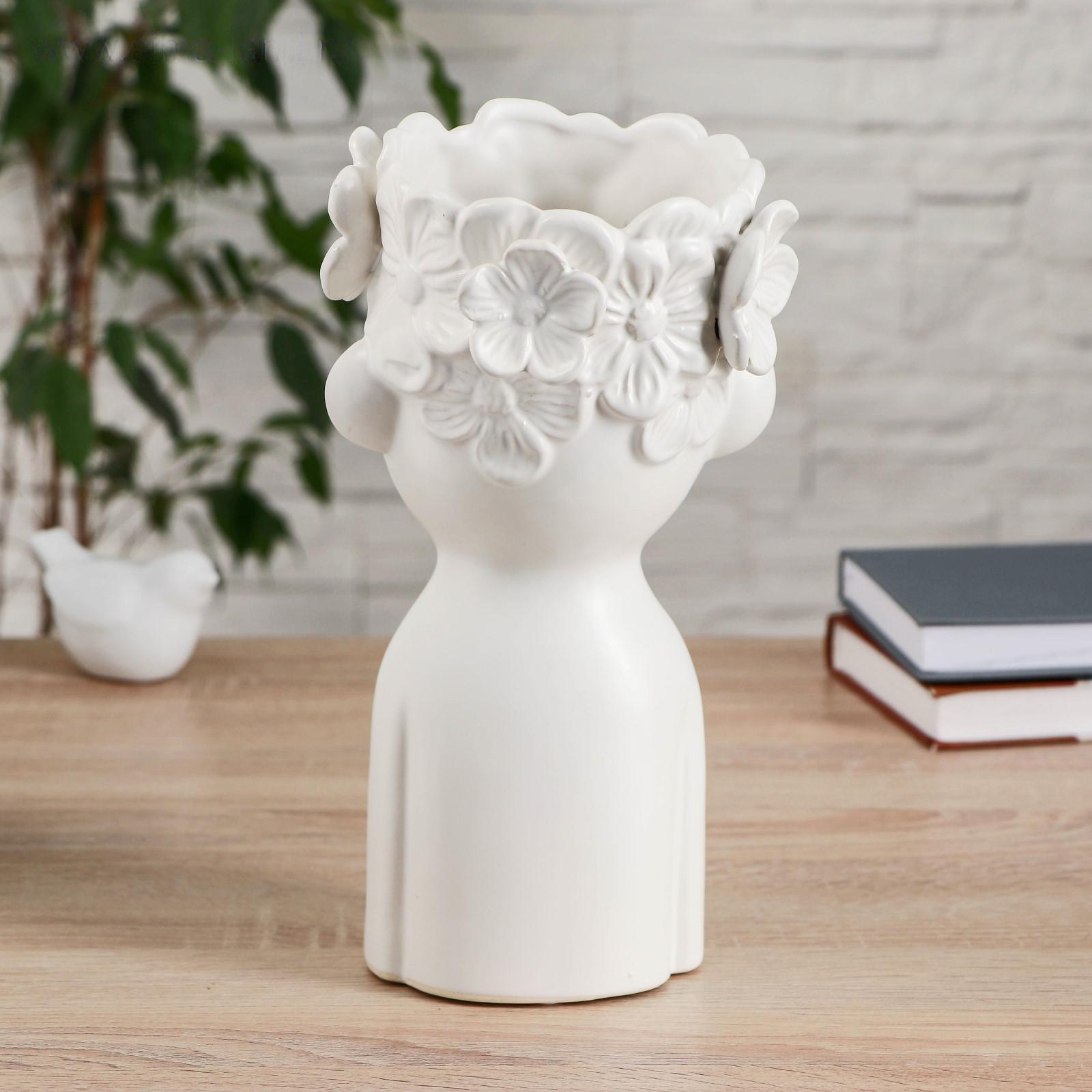 Ваза керамика "Цветущий взгляд" 11х27 см, белый