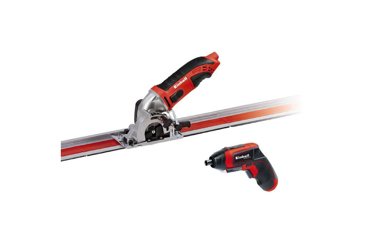 В состав набора входят: Мини-пила дисковая EINHELL TC-CS 860/1 Kit (4330993) 450Вт рез 23мм, Отвертка акк. Einhell TE-SD 3,6/1 Li (4513501) 3.6В/1.5Ач, 4.5 Нм, хвостовик 6.35, 1/4''