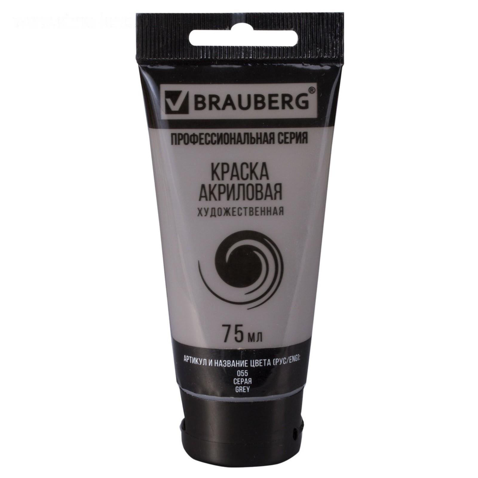 Краска акриловая художественная туба 75 мл BRAUBERG "Серая"