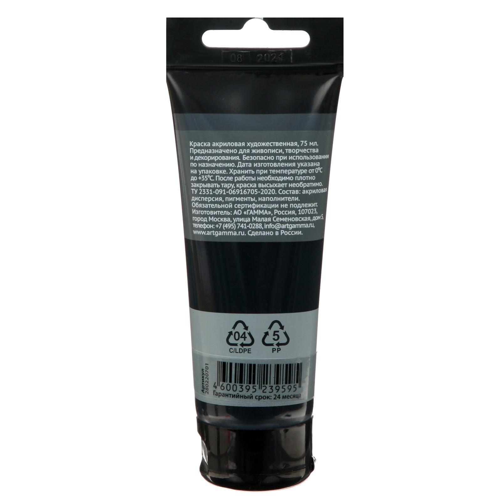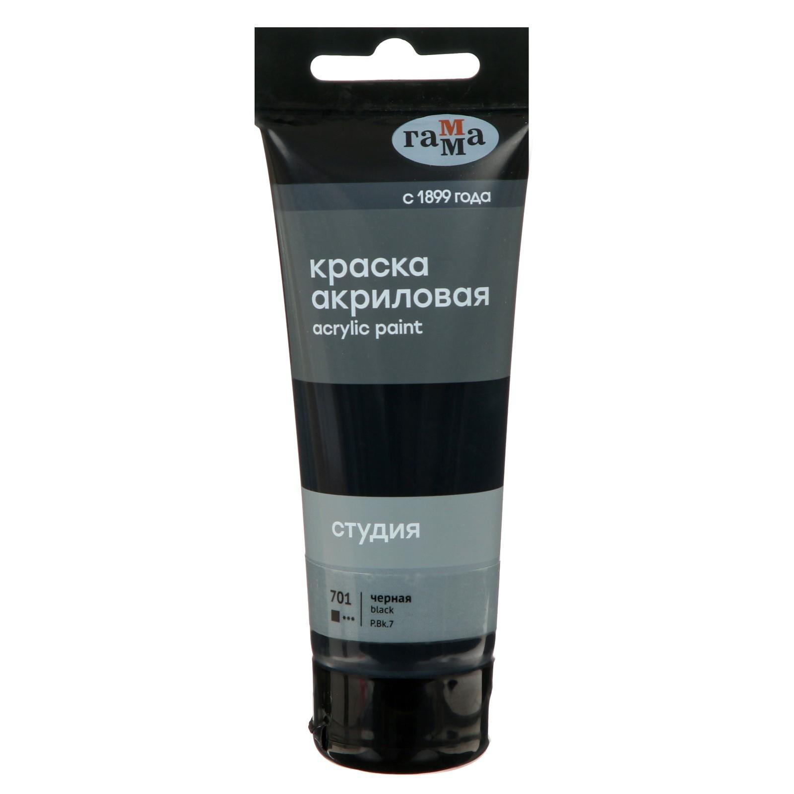 Краска акриловая Гамма "Студия", туба, 75 мл, №701 чёрная