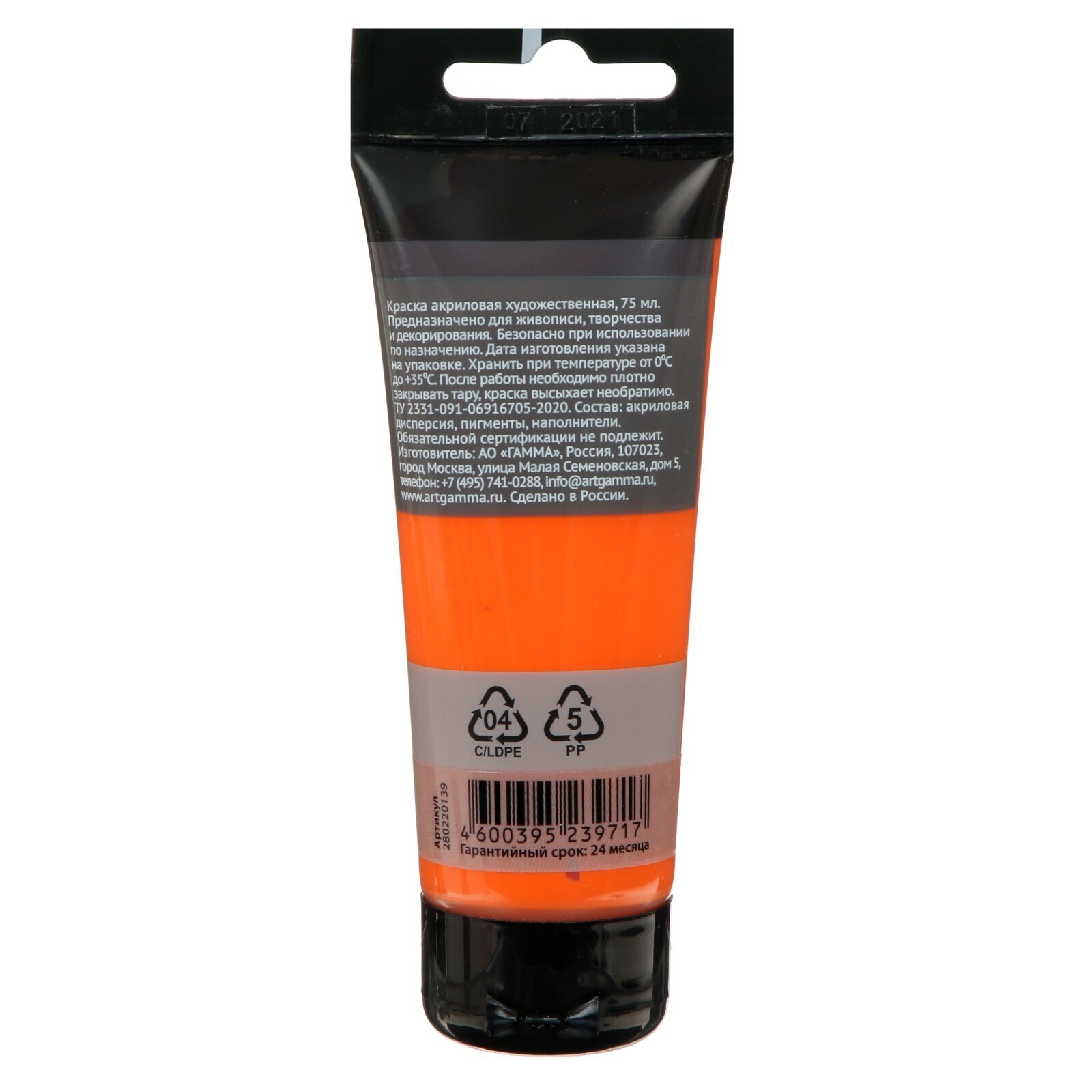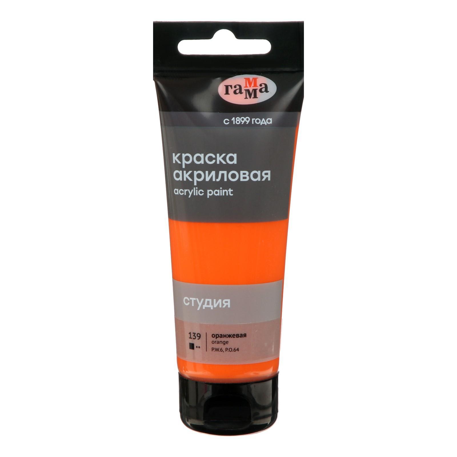 Краска акриловая Гамма "Студия", туба, 75 мл, №139 оранжевая