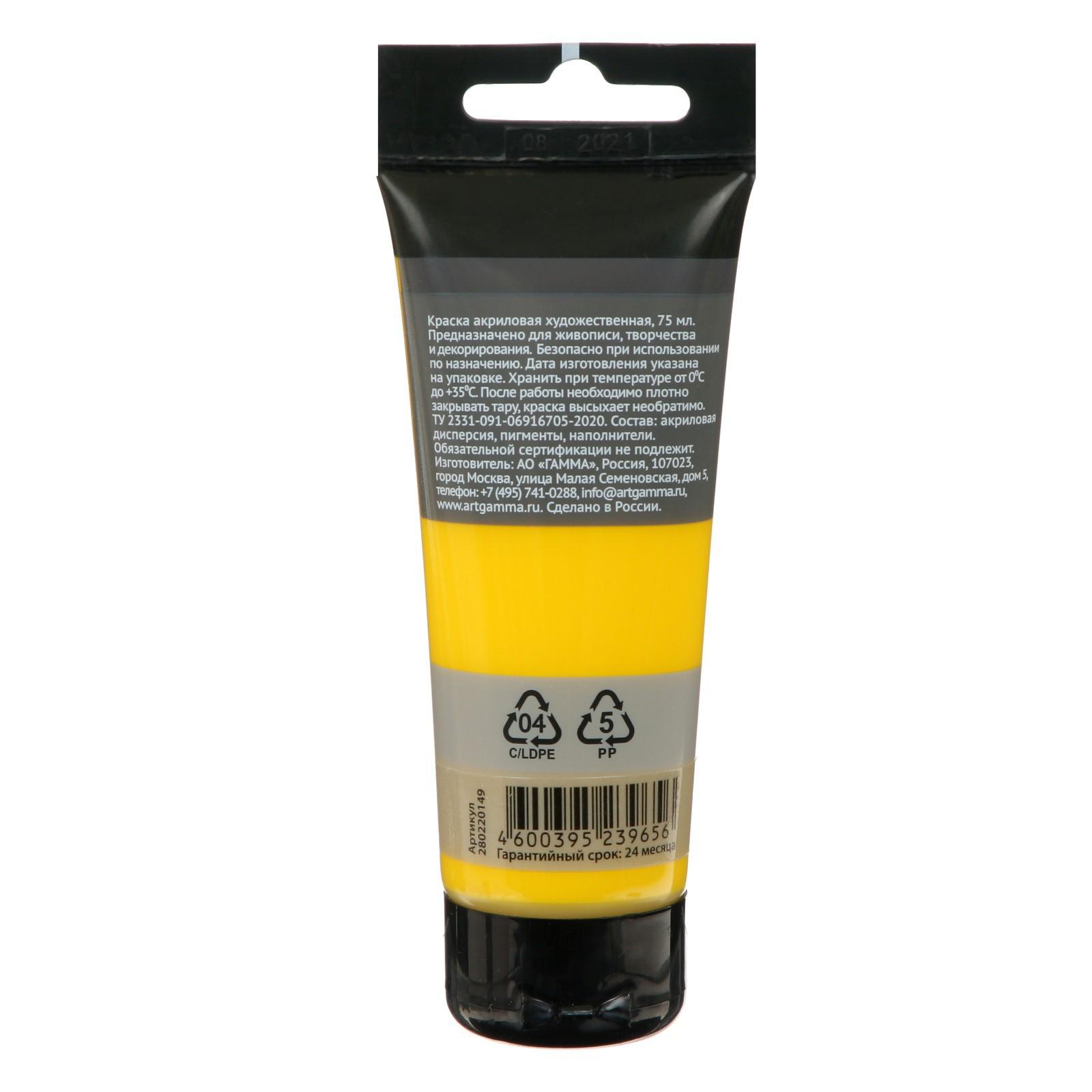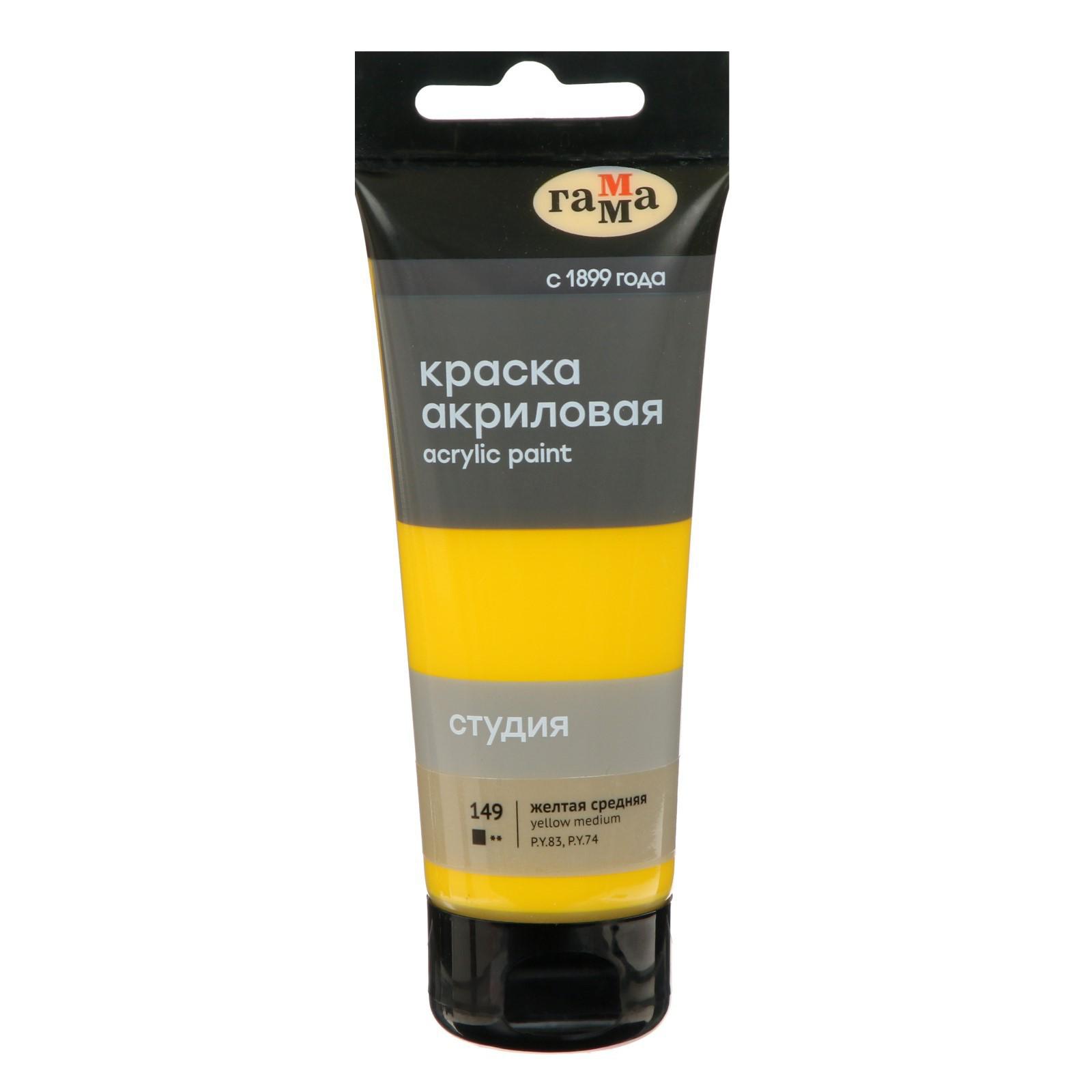 Краска акриловая Гамма "Студия", туба, 75 мл, №149 жёлтая средняя