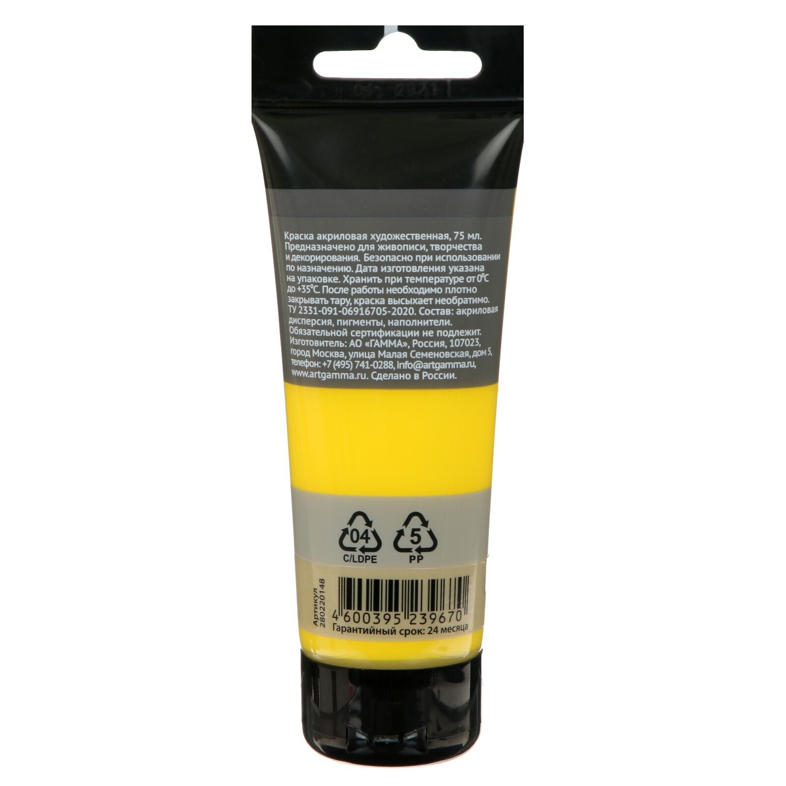 Краска акриловая Гамма "Студия", туба, 75 мл, №148 жёлтая светлая
