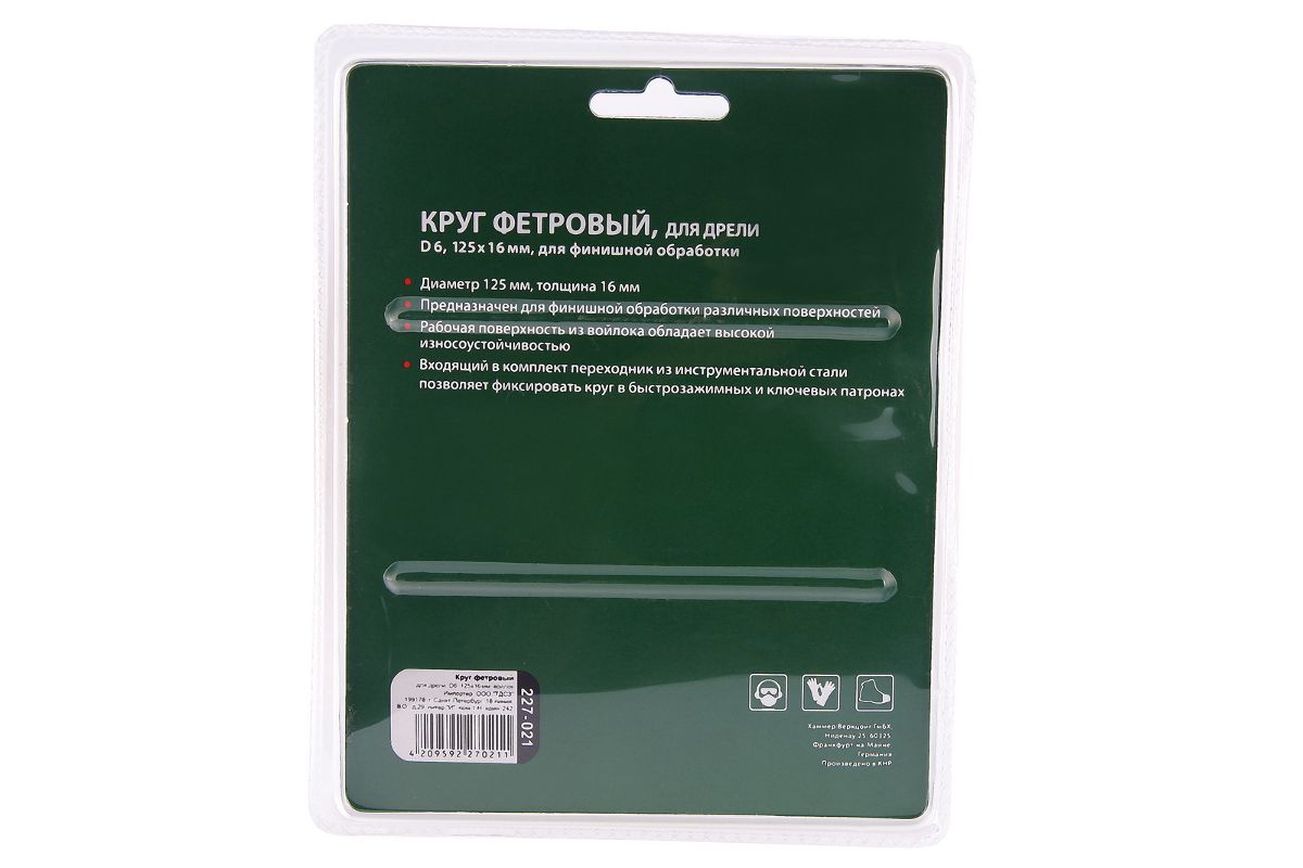 Диск полировальный Hammer Flex 227-021 PD d6 FL 125x16 мм фетровый, для дрели
